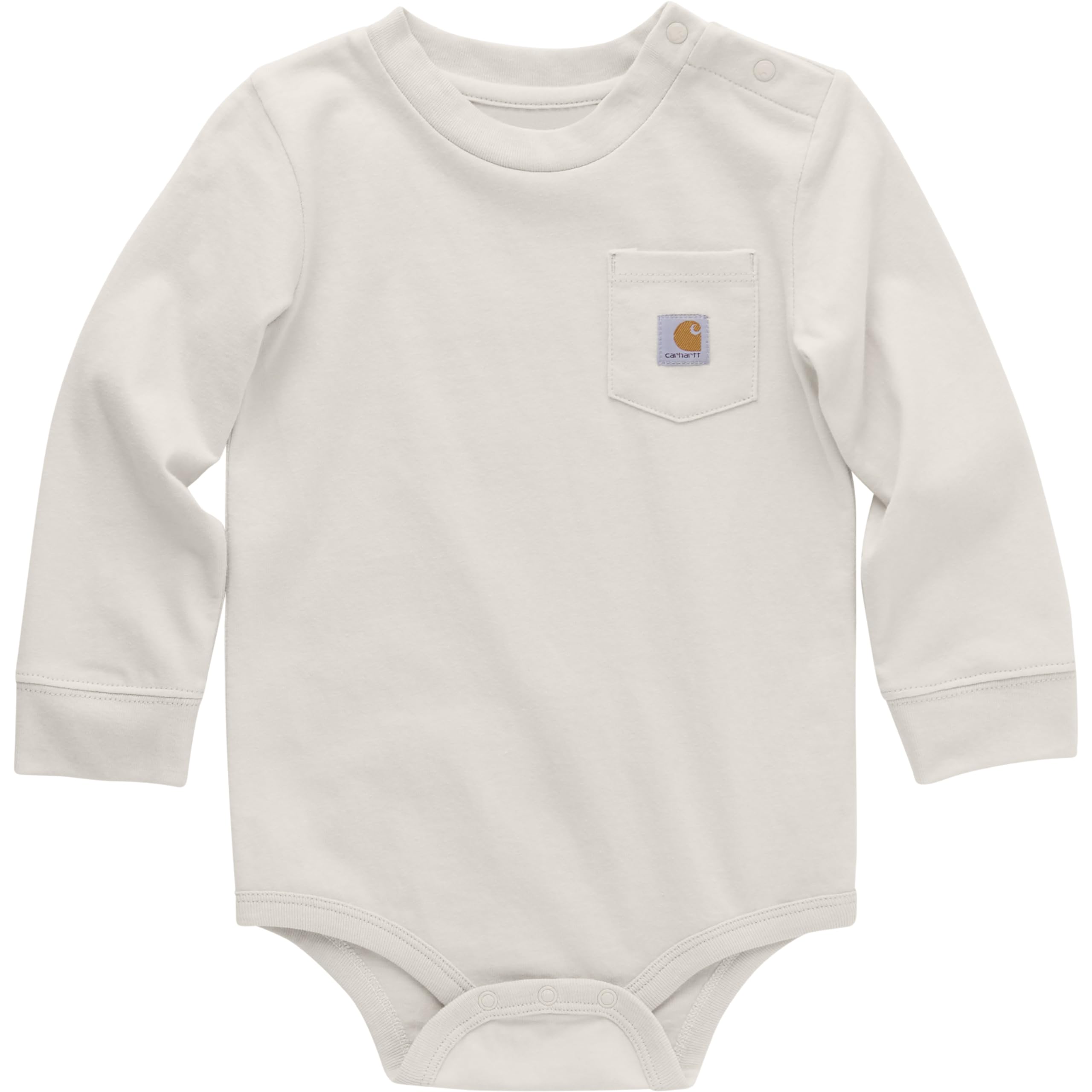 Description This long-sleeve cotton bodysuit from Carhartt is made for babies who are born to explore. Whether theyβre rolling, crawling, or just snuggling up with a favorite blanket, this comfy one-piece delivers all-day softness and dependable durability. The 100% cotton fabric is gentle on sensitive skin and breathable enough to handle active days or cozy naps. Designed with parents and caregivers in mind, this bodysuit features shoulder snaps for easy on-and-off changes, plus bottom snaps to simplify diaper duty. The signature Carhartt logo patch on the front chest pocket adds a little rugged charmβperfect for little adventurers in the making. From everyday playdates and daycare to family gatherings and outings, this versatile baby tee//top layers beautifully under jackets or works on its own. The lavender color makes it a gender-neutral favorite, while the quality construction means it can be worn, washed, and passed down again and again. Whether you're shopping for your own little one or looking for a thoughtful baby shower gift, this Carhartt baby bodysuit blends style, comfort, and function in one perfect piece.