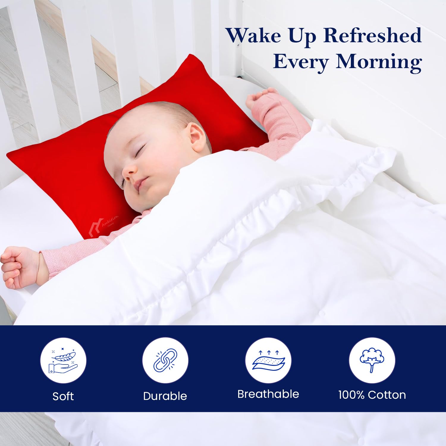 PILLOW CASES 2 PACK: Toddler Pillow cases includes 2 pillow cases 12 x 16 Inch. Sleeping better Your Toddler and wake up each morning feeling refreshed. Soft, comfortable and luxurious pillow cases you can find. Discover the ultimate in high-end with our Cotton-smooth Pillow Case Cover. Breathable, and cool to the touch, our luxuriously soft Red Pillow cases will create a heavenly sleeping experience.