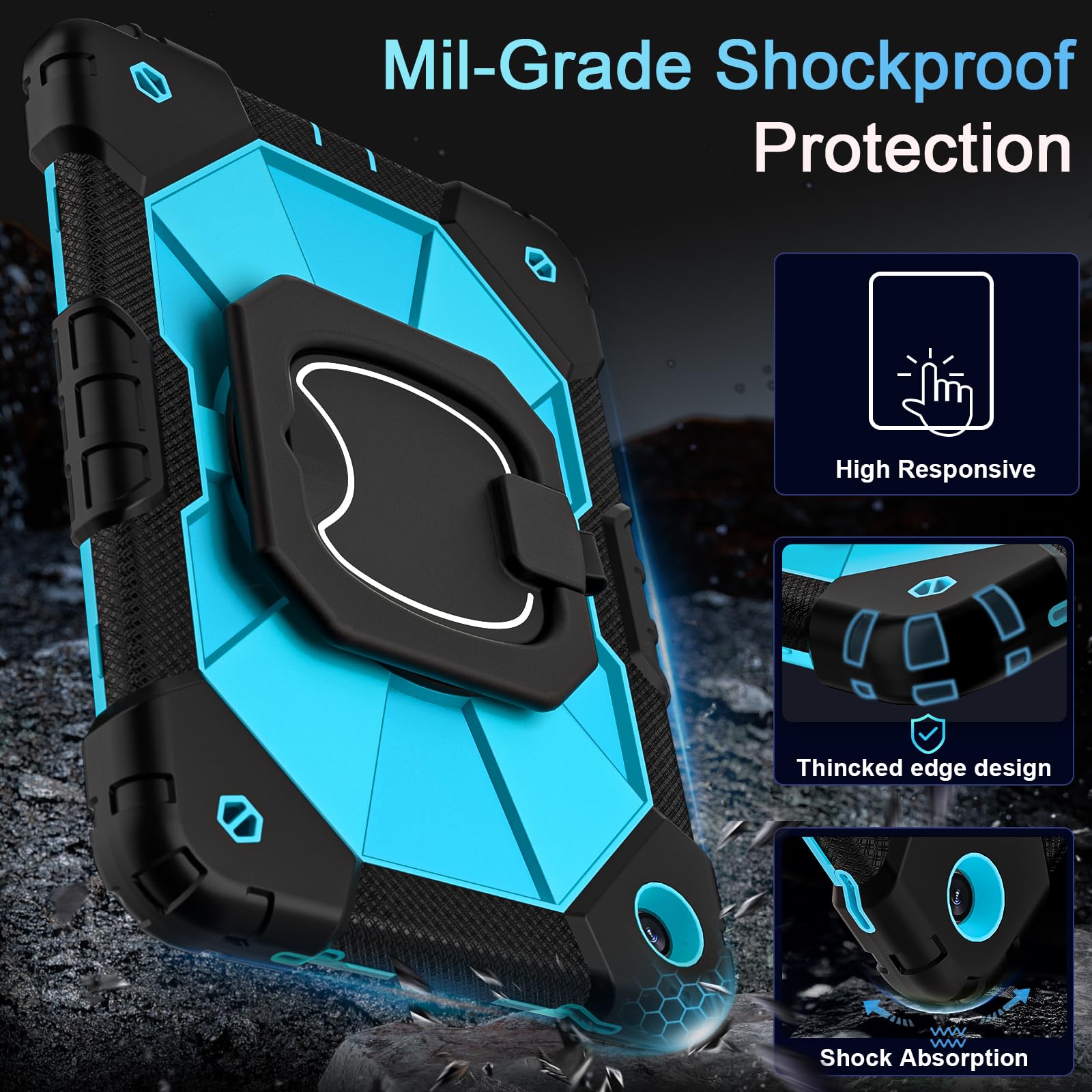 【PREMIUM PROTECTION】This samsung galaxy tab a9+ case is made of shockproof PC & soft silicone(with built-in screen protector),so nice to touch,provides a better grip.Unique shock-proof design keeps your tablet better protected to avoid daily bumps,scrapes,defeat 99% accidental drops,unbreakable!