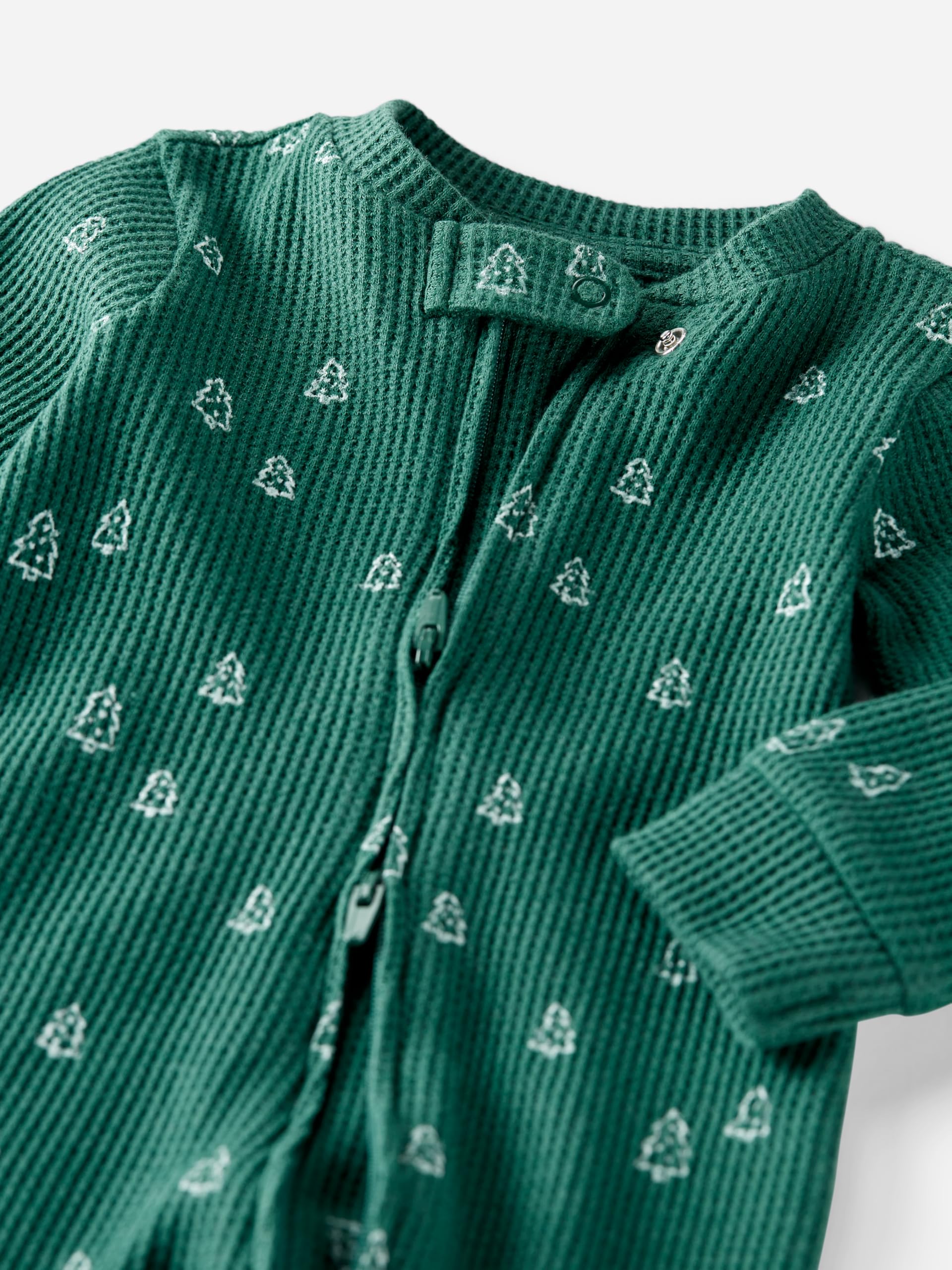 Description Cuddle baby up in this soft, certified organic cotton sleep & play. Made for daily adventures in tummy time, nap time and beyond, this piece is blooming with thoughtful details like a 2-way zipper to keep baby's arms & torso warm during diaper changes, plus built-in footies to keep tiny toes cozy. In our exclusive print, this one piece is wildly cute!