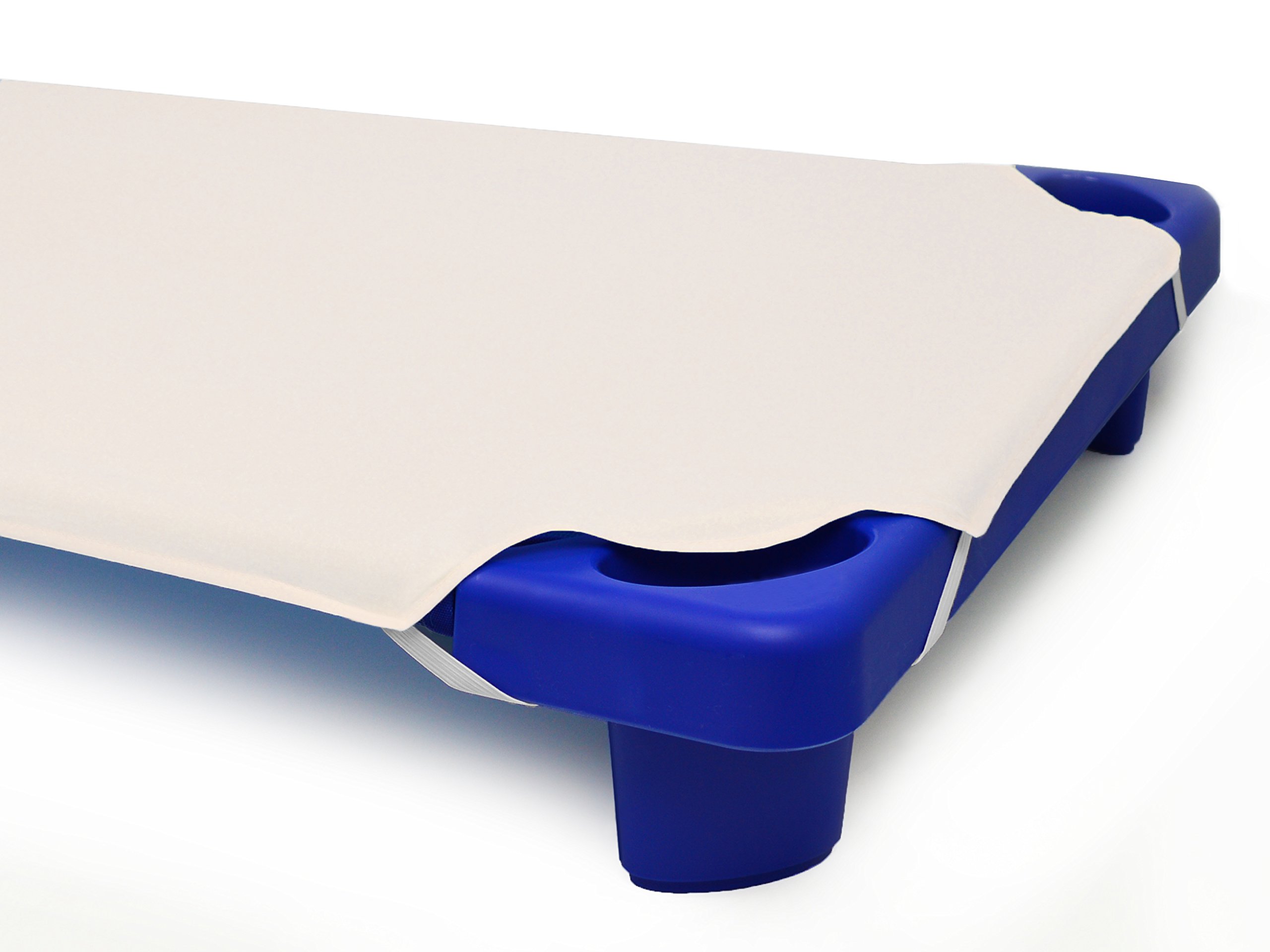 Sturdy Elastic Straps for a Secure Fit: Features four reinforced elastic straps that wrap around each cot corner to hold the sheet firmly in place, preventing shifting or bunching during naps and rest time in busy preschool settings.
