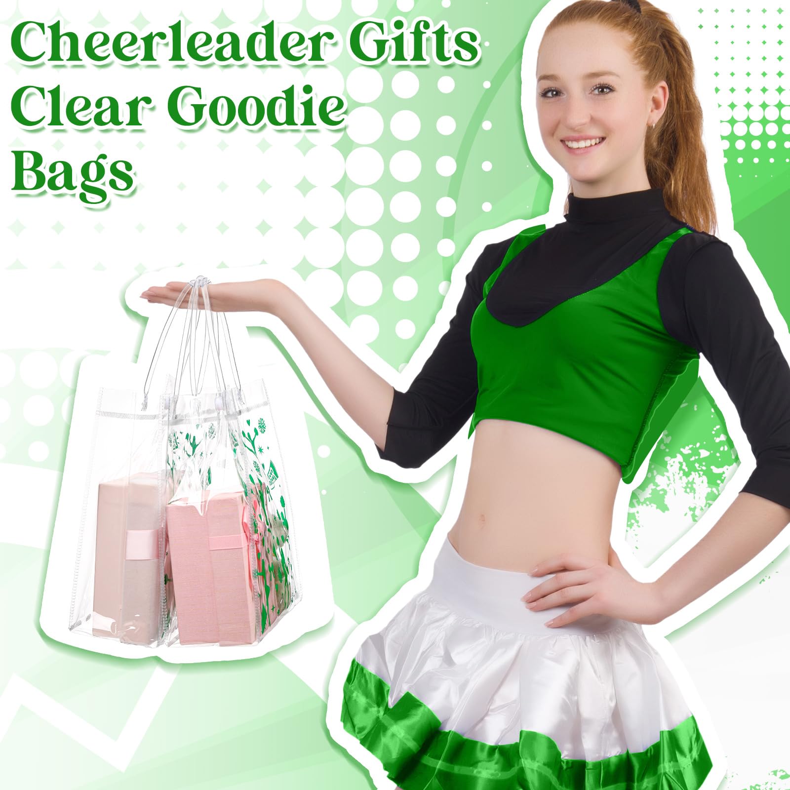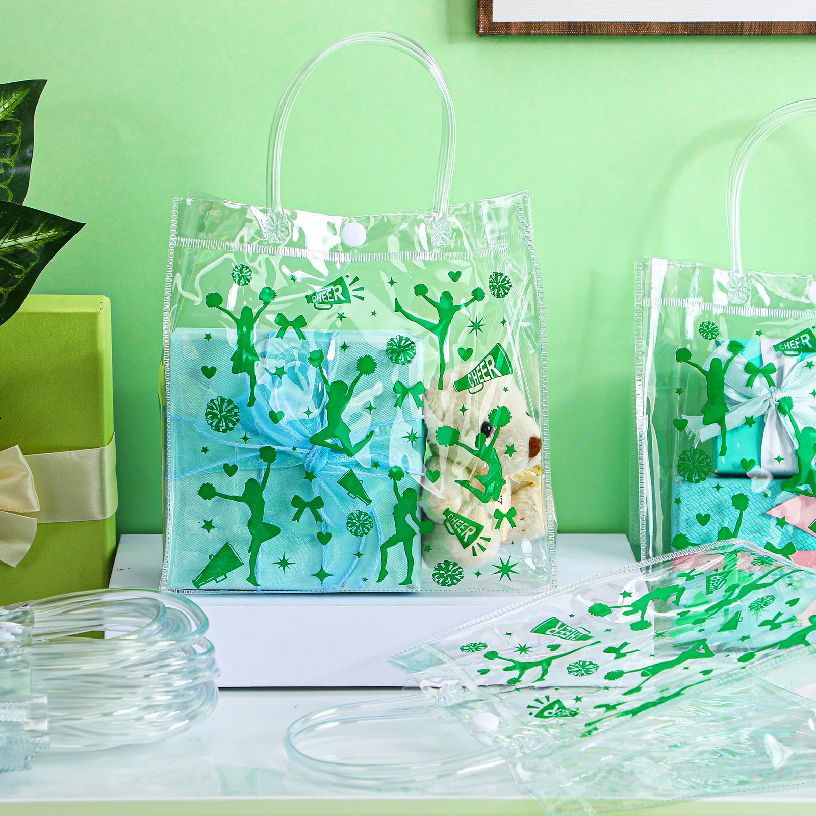 Abundant Quantity for Ample Needs: the package includes 24 cheerleading party clear goodie bags with handles, ensuring a generous supply to meet most party needs; Suitable for packaging gifts to share joy and strengthen relationships