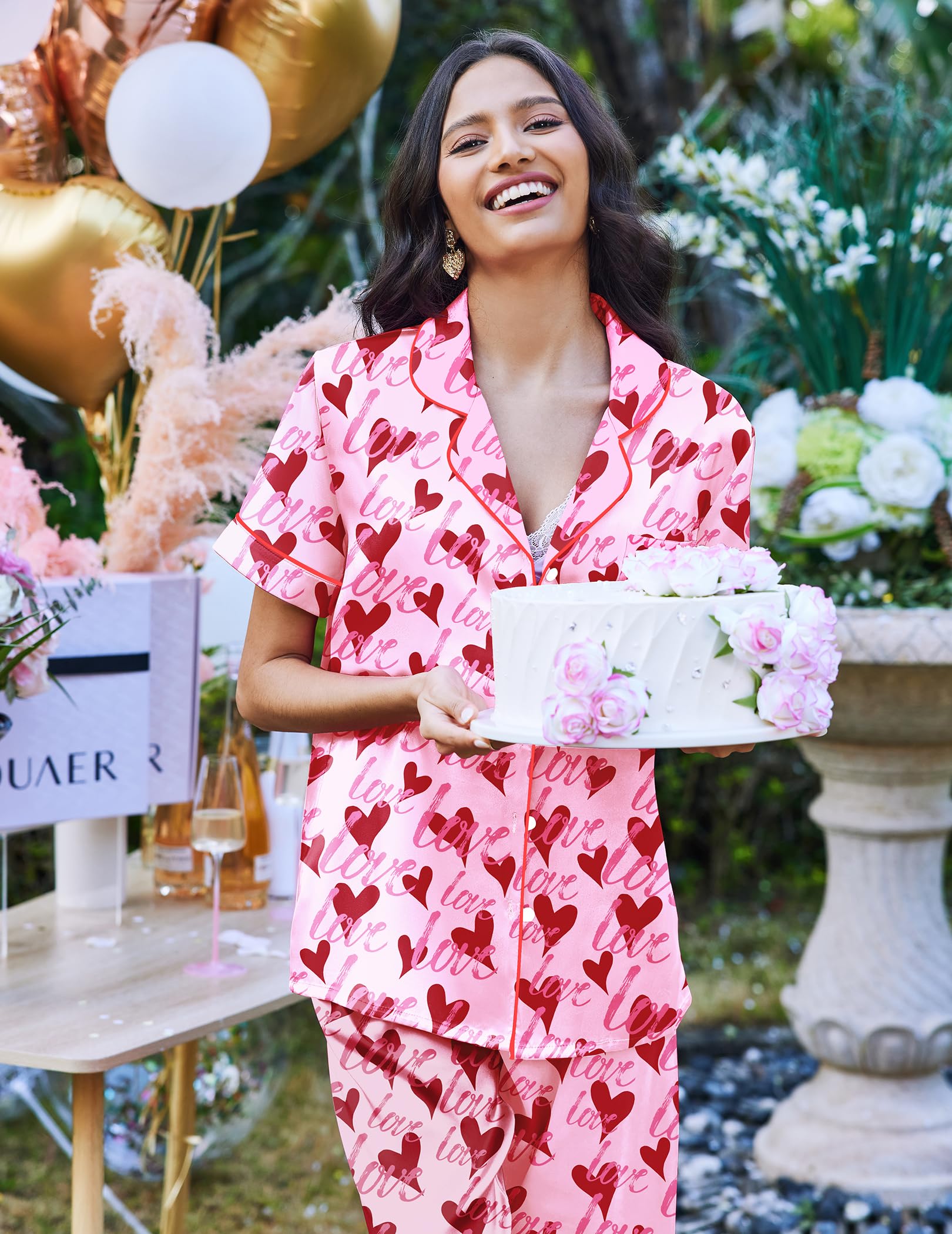 Best Gift: The silk pajamas for women are made of high quality imitation silk fabric, it is soft and natural shiny. The nightwear is suitable as your wife, girlfriend, mother, sister and daughter birthday gifts, as well as New Year, Valentine's Day, Christmas, bridal party gifts, honeymoon holidays or other festivals or anniversaries of exquisite gifts.