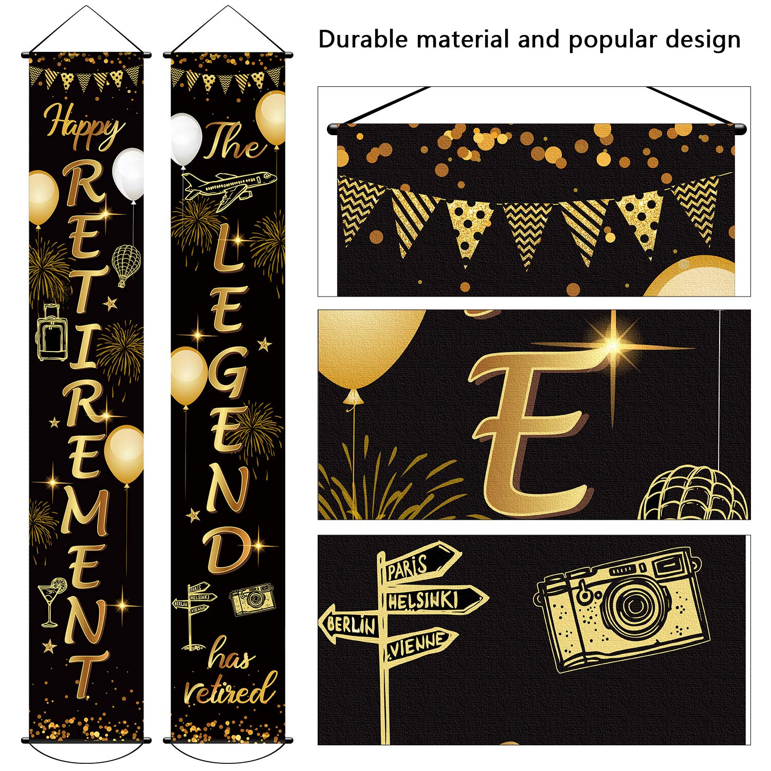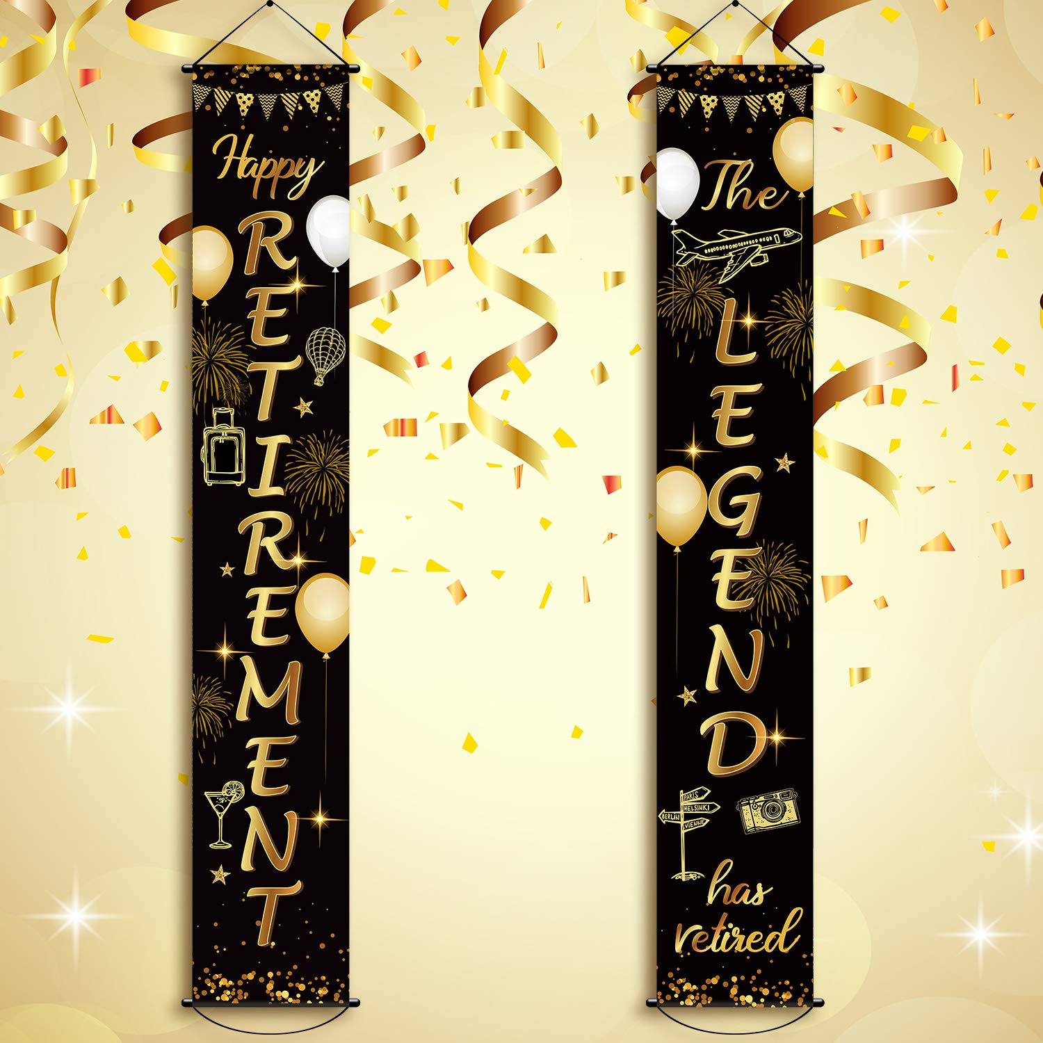Package includes: come with 1 piece "RETIREMENT" hanging banner and 1 piece "The LEGEND has retired" banner, vibrant to complete your retirement party decorations
