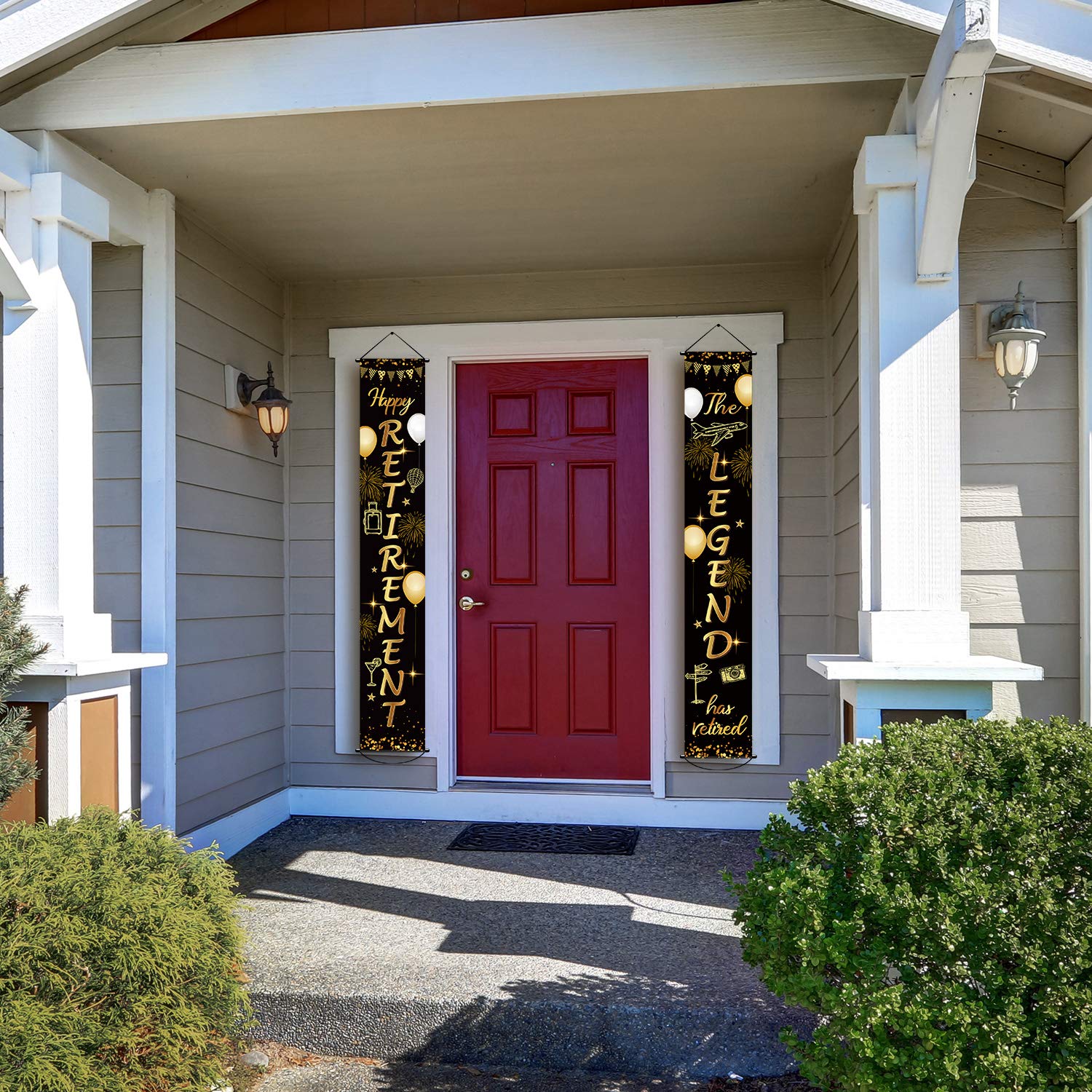 Durable material: the retirement hanging porch sign banner and the "The LEGEND has retired" hanging porch sign banner are made of quality polyester, which can support long time usage; Also, it is reusable with such a fabric; If you are looking for a quality reusable banner, that's it