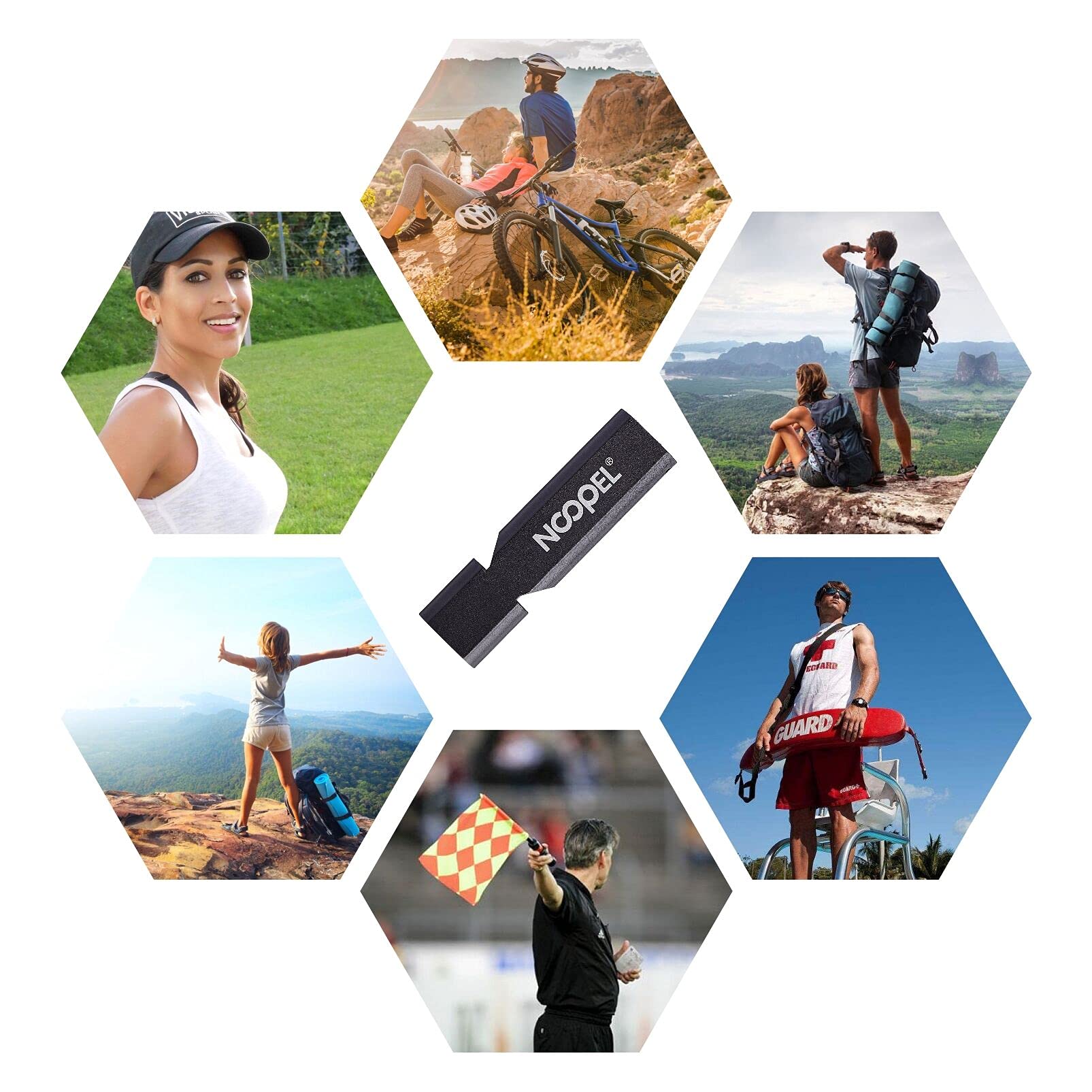 Versatility: A high-decibel safety whistle designed for multifunctional use in various scenarios, including lifeguard operations, camping, hiking, hunting, fishing, boating, backpacking, swimming, kayaking, marine sports events, and other outdoor activities.