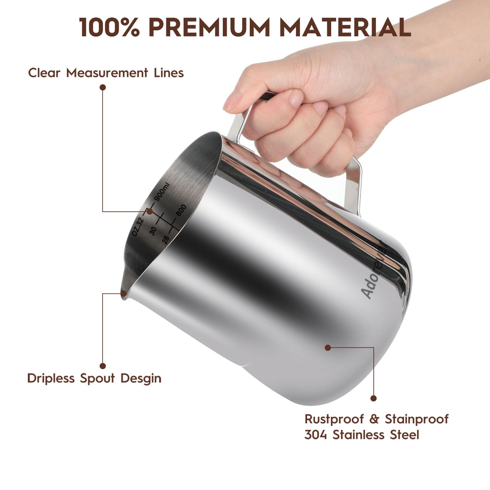 Premium Quality: The milk steaming pitchers and coffee art pen are made of chrome finished #304 stainless steel. Rust-proof, stain-proof, heat-proof, unbreakable by daily use.