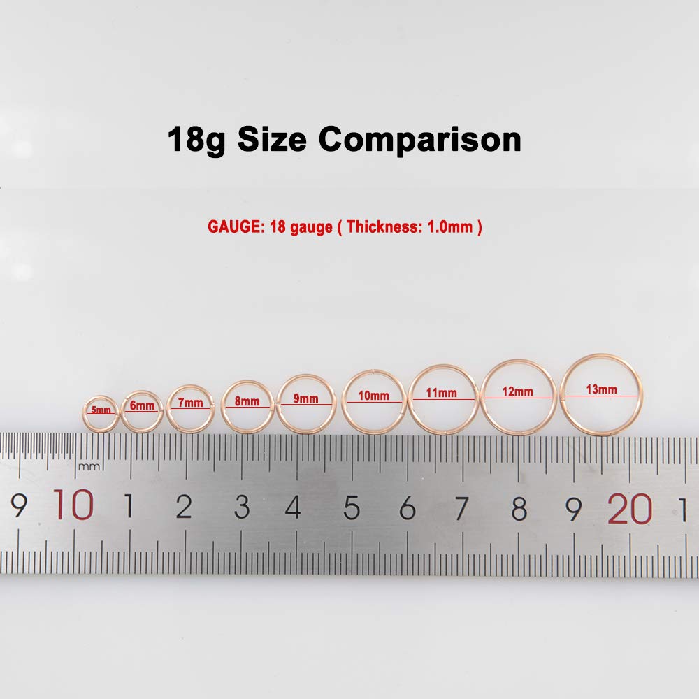 This 18g 6mm hinged nose ring is VERY SMALL! We don't suggest male customers and the persons who have big nose or ears to pick this size. If you never wore 6mm before, try to pick larger inner diameter. This ring's size info: 18 gauge (thickness: 1.0mm), inner diameter 6mm ( 15/64 inches ).