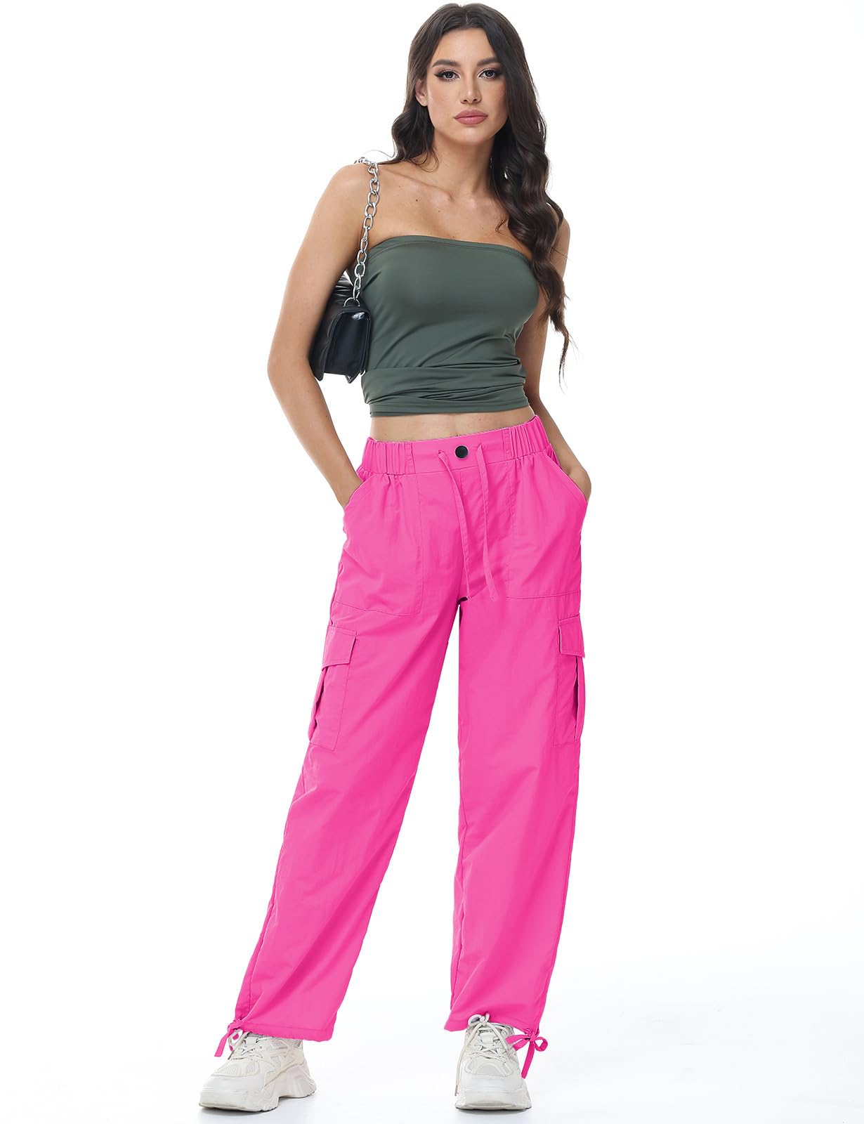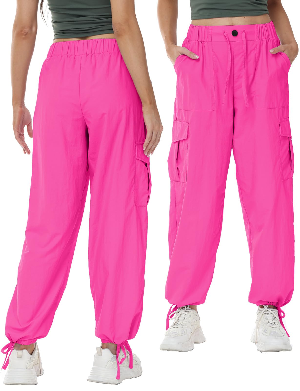 Y2k parachute pants with drawstring at waist and hem to adjust the fit and length
