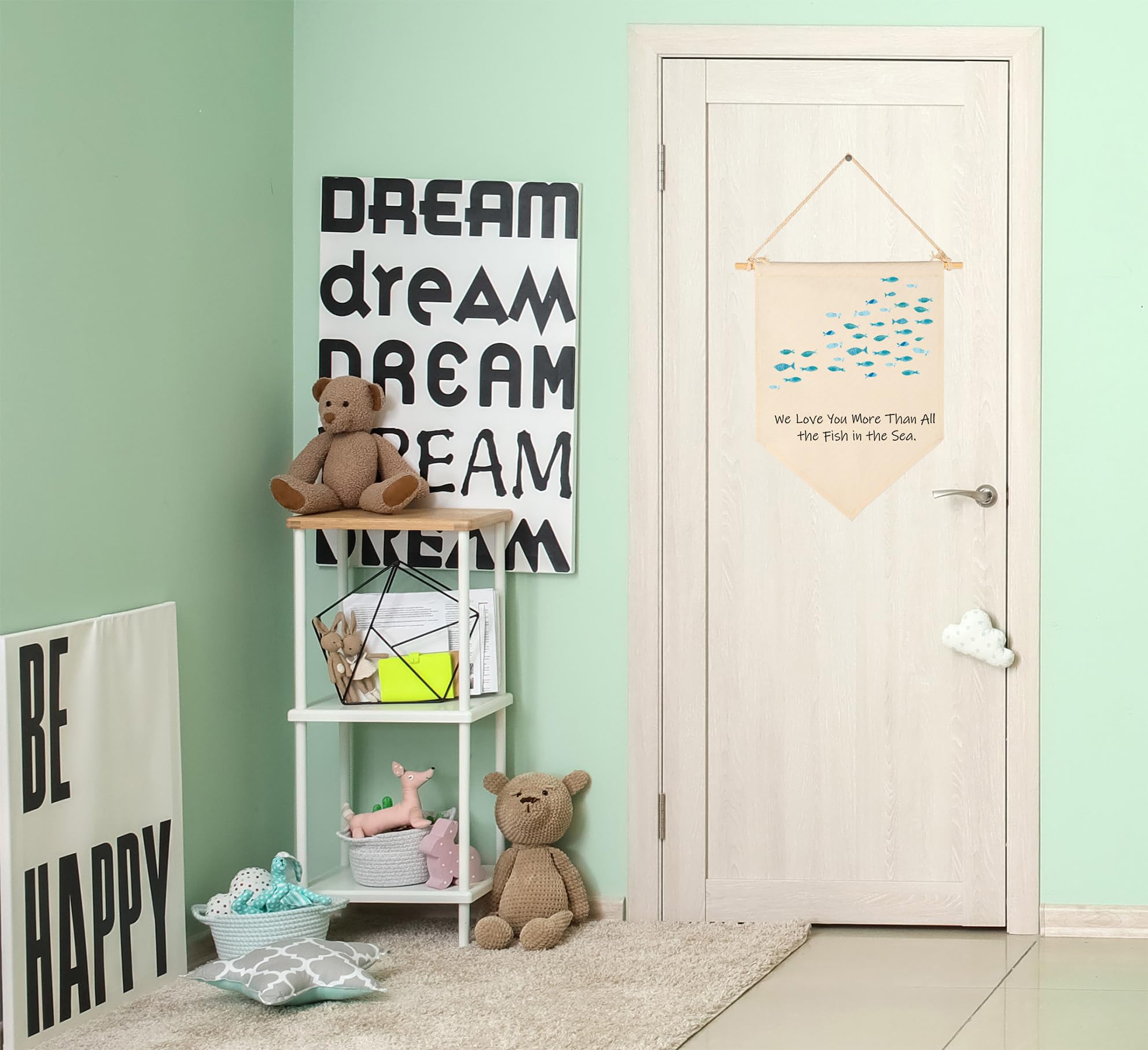Crafted from natural cotton canvas, this 15.4 x 11 inch nursery wall banner brings a soft and calming touch to baby room, above crib or toddler space. The durable fabric keeps its shape with a natural texture, while the clear print stays bright with everyday use. Lightweight and easy to hang, it comes with a wooden dowel and pre-tied twine for quick setup on walls, doors or shelves. The versatile size fits small spaces without feeling crowded, making it perfect for creating a cozy nursery atmosphere. A thoughtful gift for baby showers, newborn arrival or first birthday.