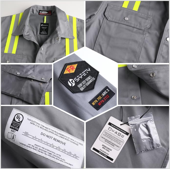 Flame Resistant Shirts: The JKSafety 7oz 100.00% cotton FR long sleeve shirts for men is crafted from durable FR fabric; The fr shirts resists fire without dripping or melting. The FR Clothing complies with an ARC Rating of CAT 2, certified by UL for reliable flame-resistant performance. They offer protection for men and women safety in high-risk environments exposed to sparks, flames and heat. Note: A small FR garment sample have been attached for inspection.