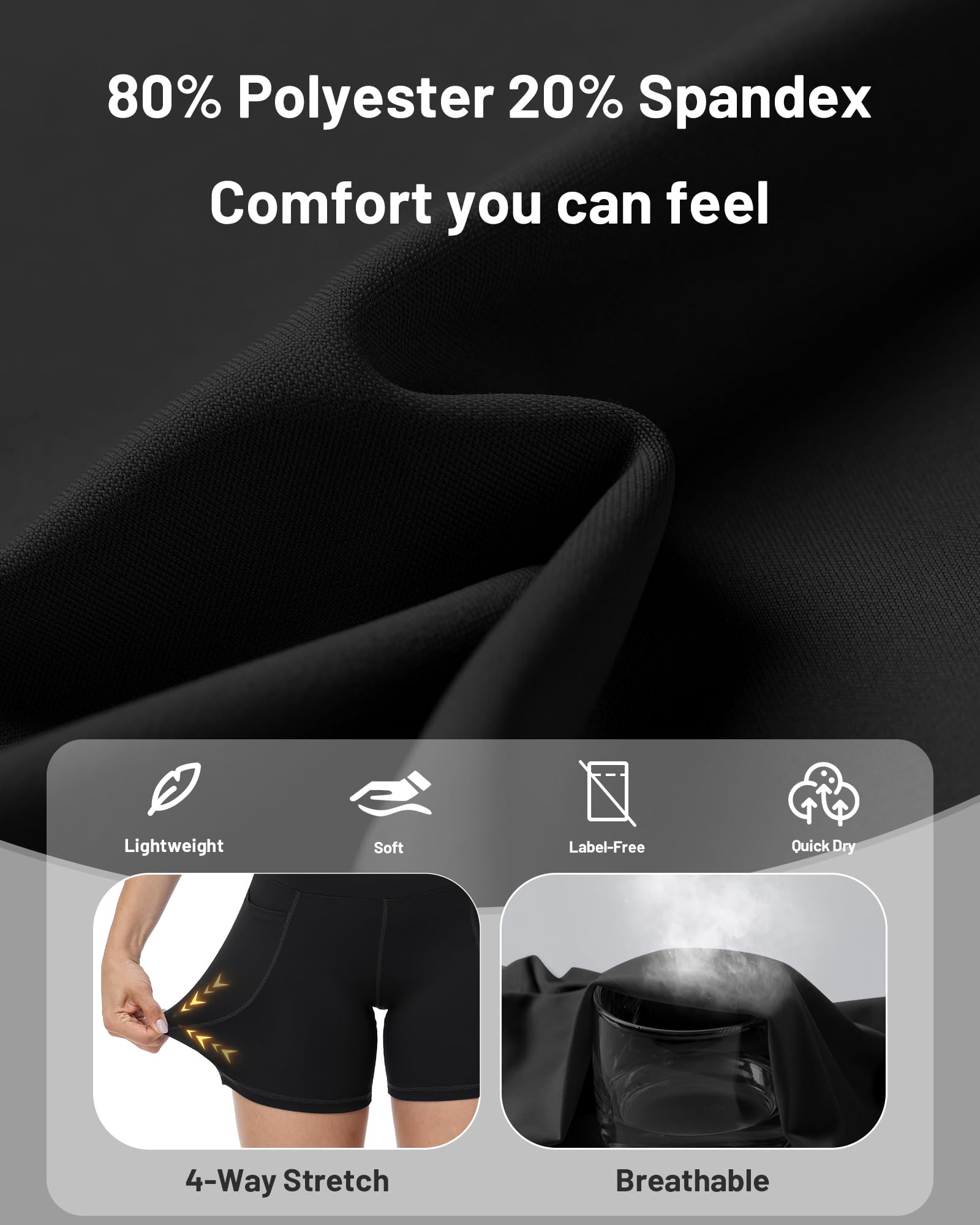 Breathable & Stretchy Fabric: Made with 80% polyester and 20% spandex, these womens biker shorts offer a silky-soft feel, stretch, moisture-wicking, and breathability for ultimate comfort during workouts