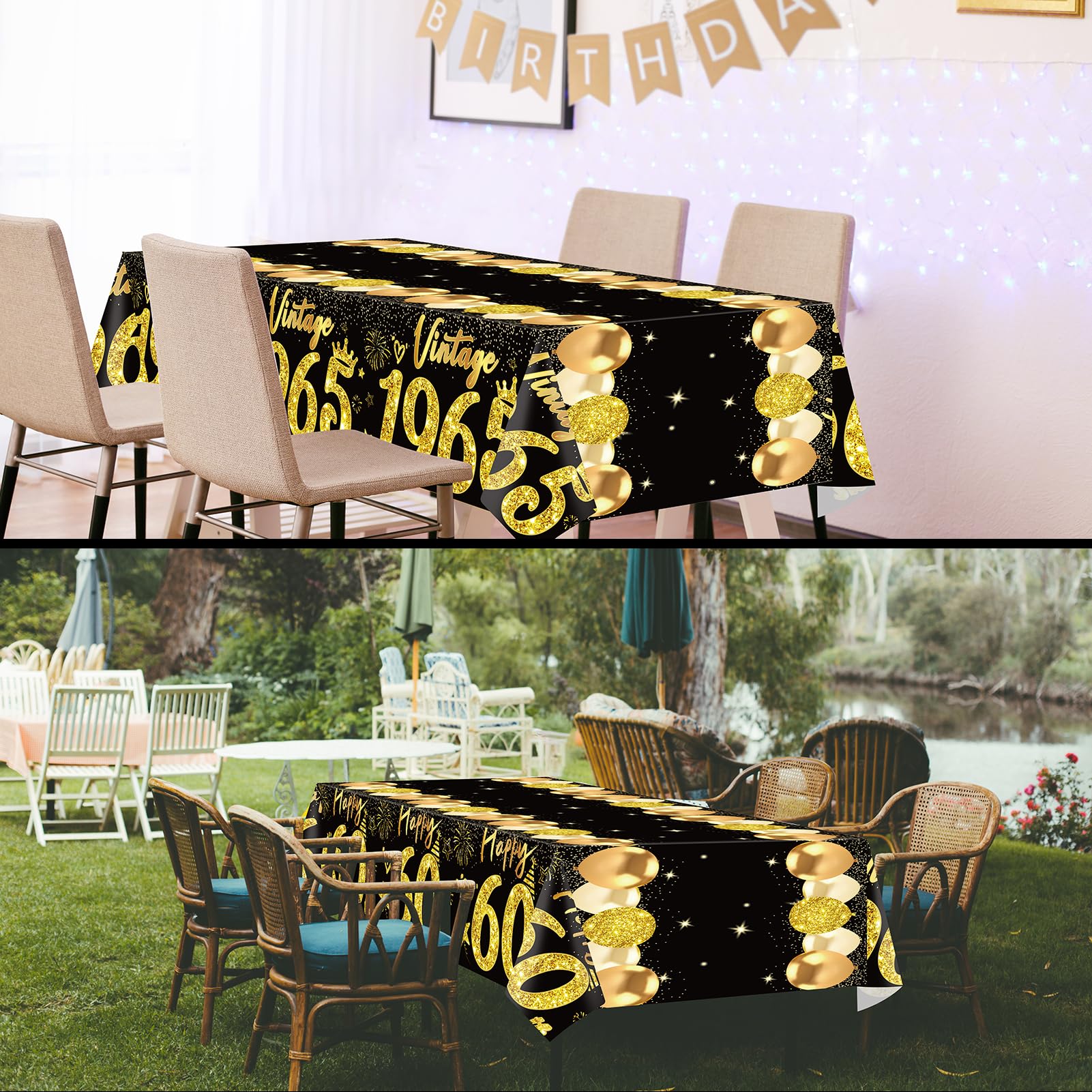 Exquisite Design: Uiorgui 60th birthday tablecloths for men, printed with "Vintage 1965" and "Happy 60th", are beautiful and elegant; with rich party elements such as balloons, stars, hearts, crowns and fireworks, these 1965 birthday tablecloths will add elegant and festive atmosphere