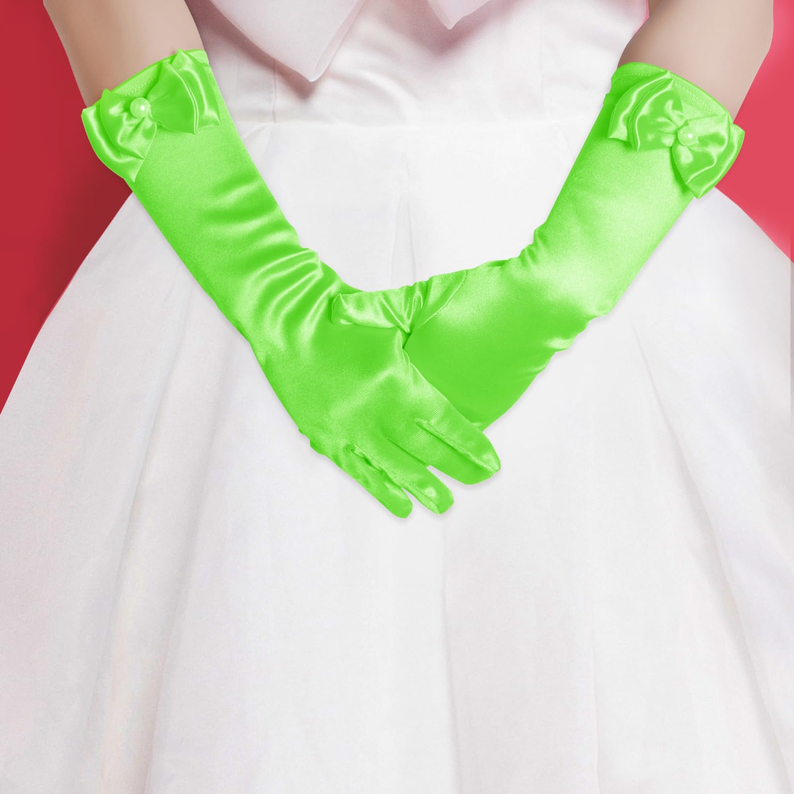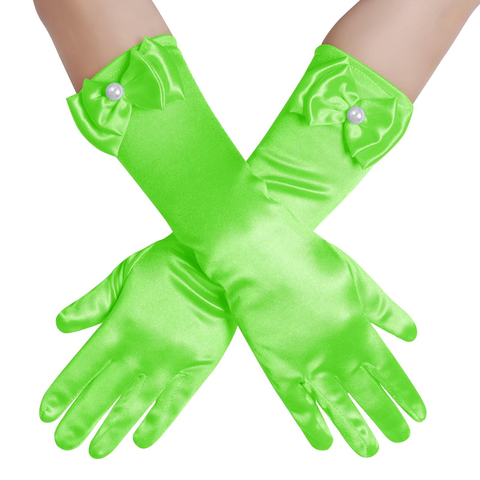 Description Features: Stretchy bow-knot girls' gloves fit children age 4 years up to 8 years old. The quality fabric is stretchable to fit a variety of sizes Easy to clean and maintain Lovely and classic gloves is a great girls accessories Suitable for little girls in Parties, Wedding, Formals Events, Performance or Costumes Package Included: 1 pair of girls gloves