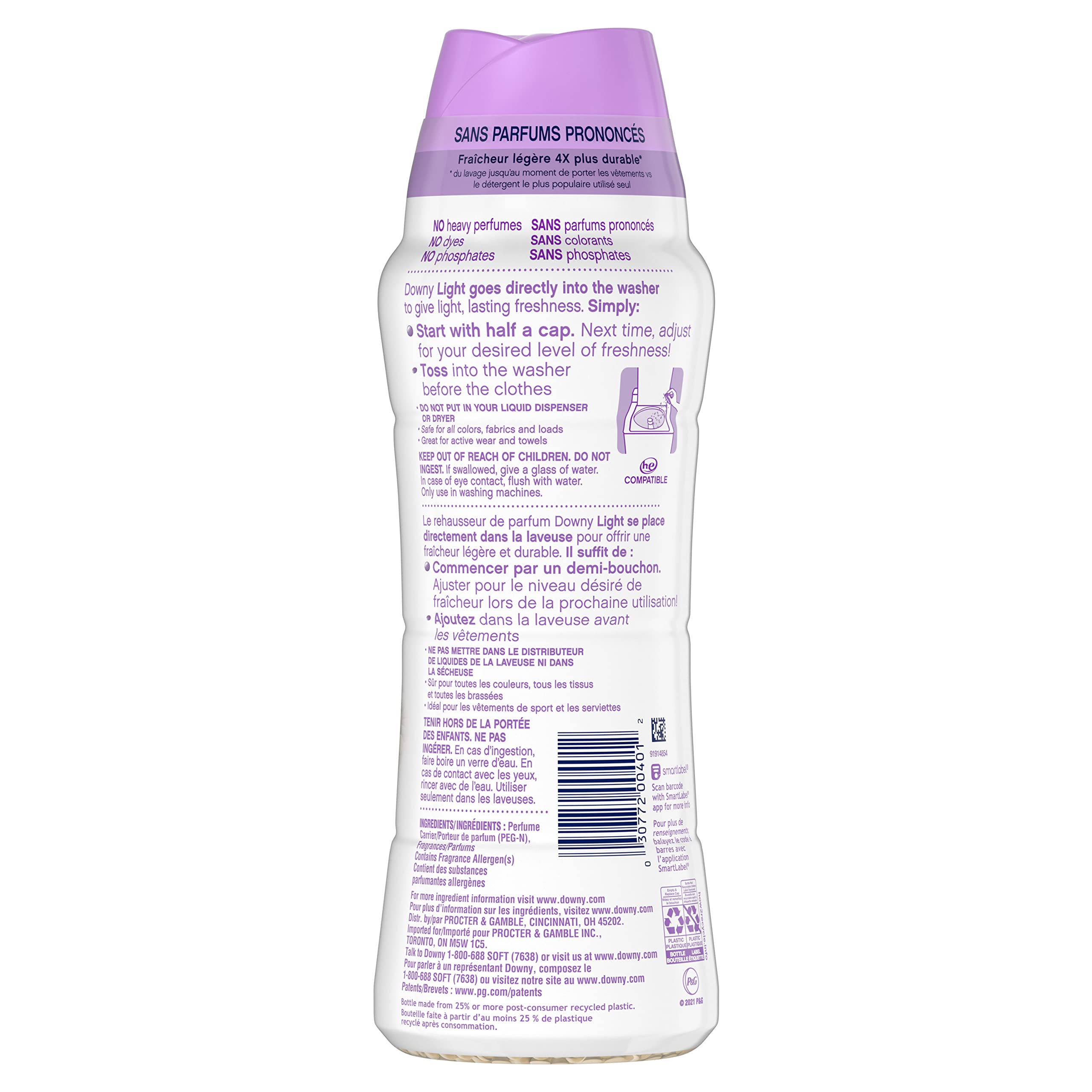 Finally, long-lasting scent that is not overpowering. Downy Light Laundry Scent Booster Beads are small, lightly scented laundry beads that give you all-day Downy freshness. They're made with no heavy perfumes, dyes, or phosphates... Plus, the White Lavender scent has the light, refreshing scent of fresh lavender with smooth, creamy vanilla. With detergent alone, the freshness of your clothes can fade after taking them out of the wash. Using Downy laundry booster beads gives your laundry 4x the long-lasting freshness than with the leading detergent alone, so you can be confident in fresh-smelling clothes all day long. They can be used on all colors and fabrics and are safe to use in all washing machines. These laundry scent beads are easy to use; just start by tossing them right into the washer drum before adding your clothing. Use as much or as little as you want to get your desired level of freshness. Looking for more ways to keep your clothes fresh? Add Downy fabric softener and dryer laundry sheets to your routine for added softness.