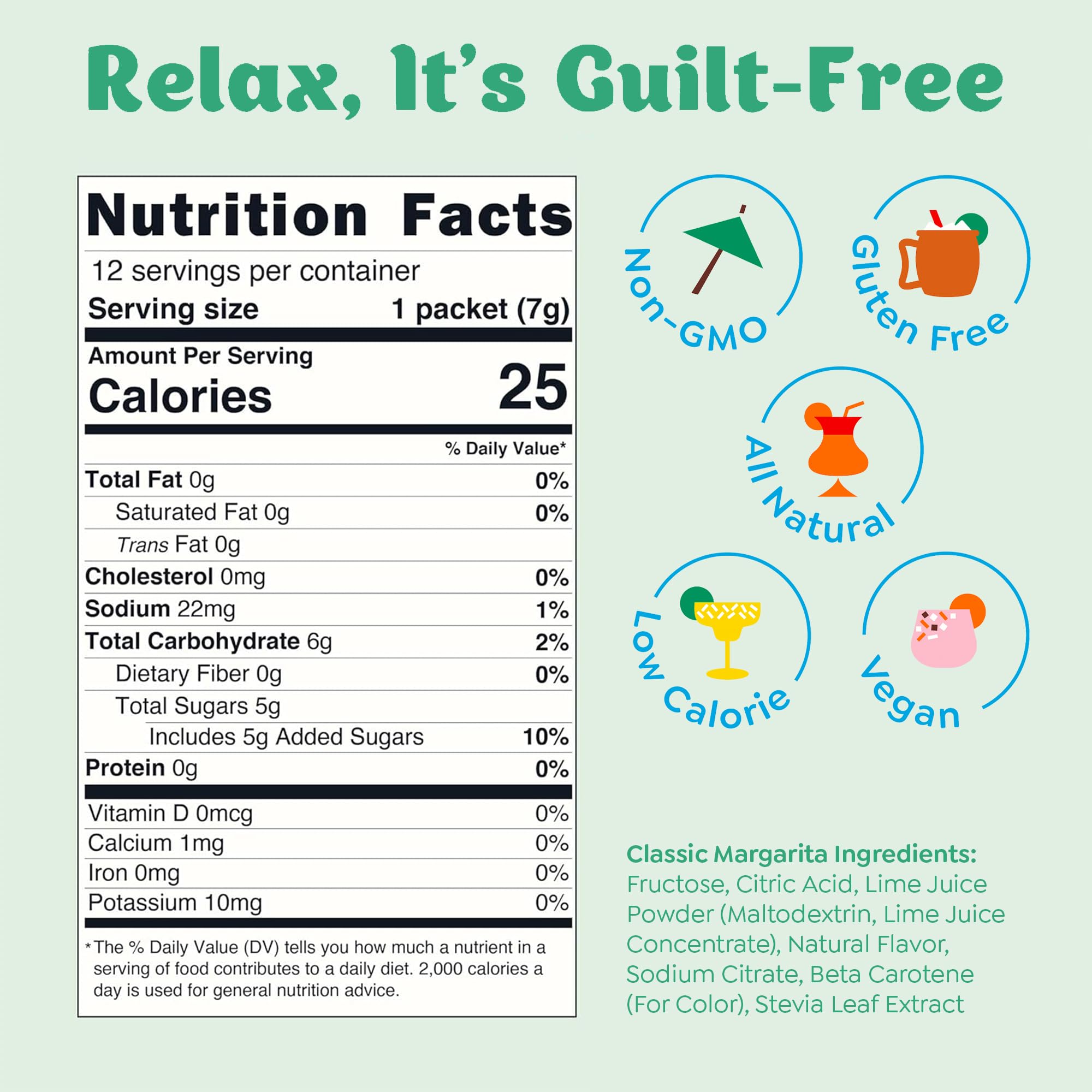 Classic Margarita Cocktail Mixer: With Craftmix, just add tequila, sparkling or still water, and ice to savor the refreshingly tangy taste of this fat-free, low-calorie alcohol drink mixer made with natural ingredients in 60 seconds or less anytime, anywhere. Pack makes 12 Drinks.