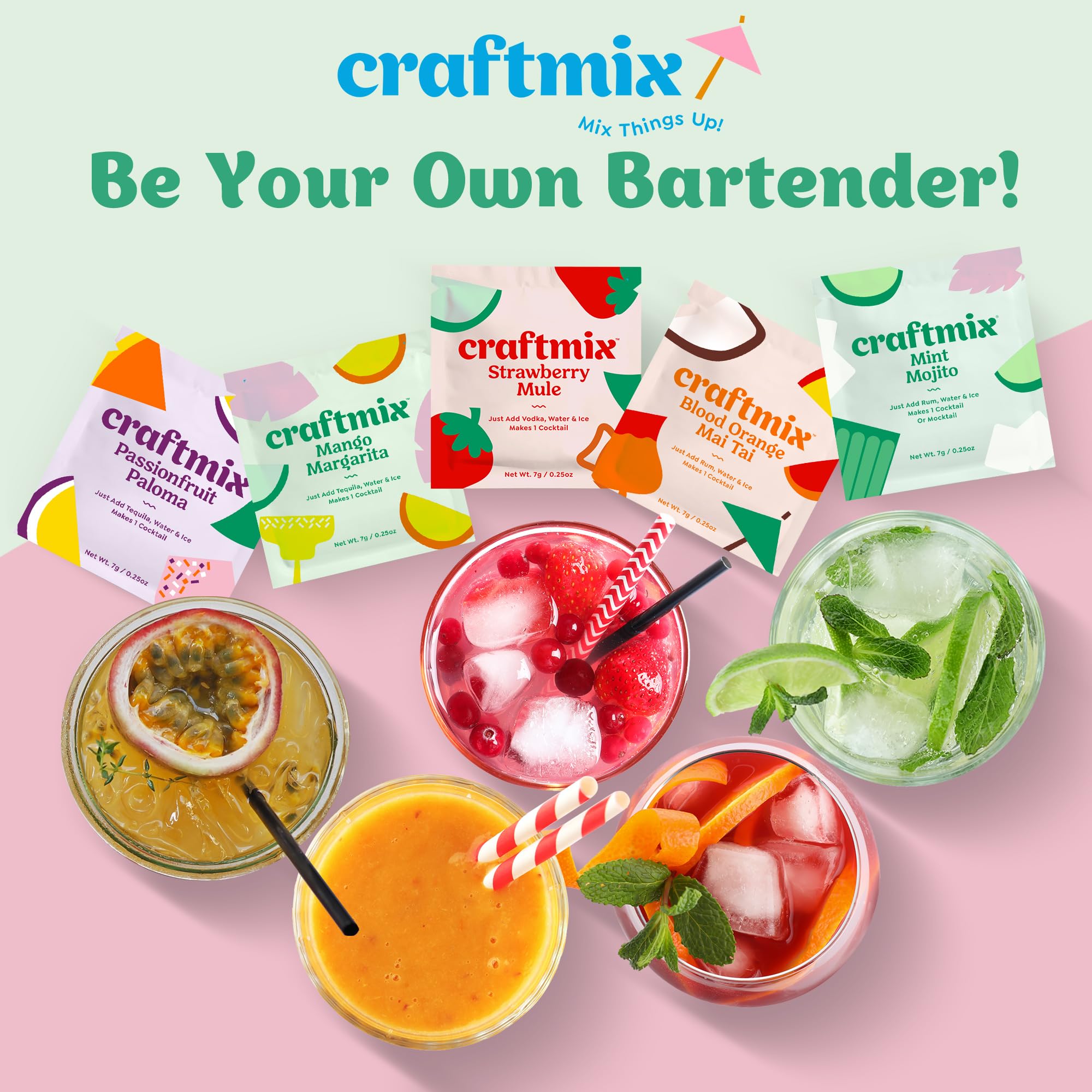 On the Go Flavor: Our drink mixers come in pre-measured individual packets you can enjoy on the beach, camping, sporting events, anywhere. Whether you are enjoying a cocktail or a mocktail, Craftmix has the perfect accessory for making every sip feel like happy hour.