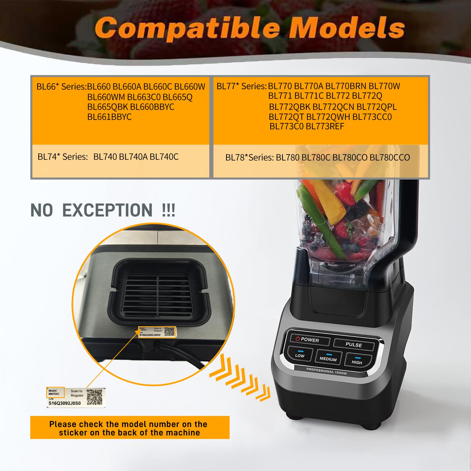 【Compatible with】Compatible with Ninja Blender Model BL660 BL660A BL660C BL660W BL660WM BL663C0 BL665Q BL665QBK BL660BBYC BL661BBYC BL740 BL740A BL740C BL770 BL770A BL770BRN BL770W BL771 BL771C BL772 BL772Q BL772QBK BL772QCN BL772QPL BL772QT BL772QWH BL773CC0 BL773C0 BL773REF BL780 BL780C BL780C0 BL780CCO NO EXCEPTION . (If you're Not Sure if the Pitcher Replacement Lid Will Fit your Blender, Please Email us and We'll Confirm it for you!)