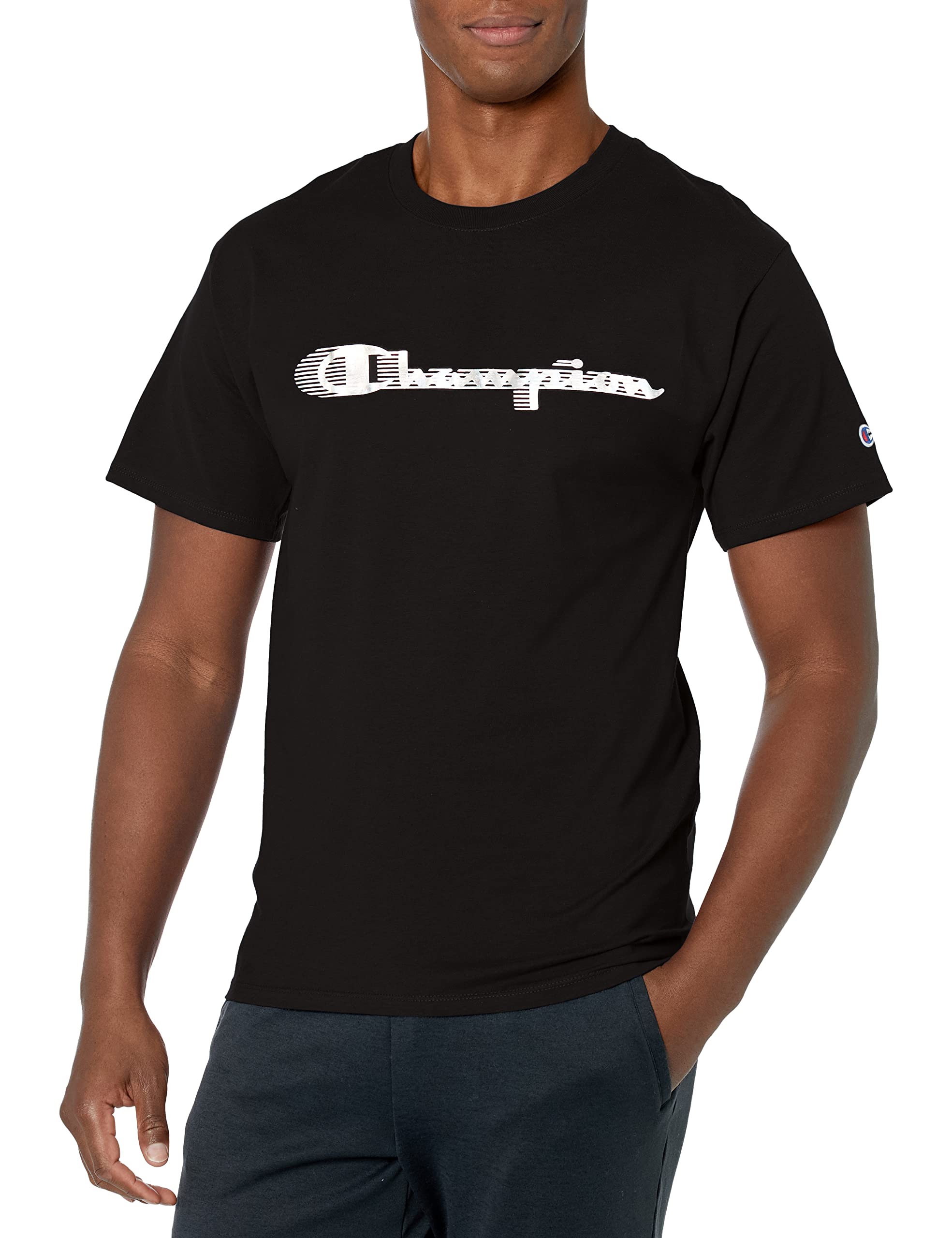 Description ALL-STAR STYLE. Outshine the competition with star graphics that bring the style. With unmatched comfort and softness, our graphic T-shirt for men is your best companion, from sport to street. Crafted with attention to detail and built to be a longtime favorite, it has a ribbed collar and sturdy stitchwork. Iconic C logo hits at the sleeve, showing everyone what you’re all about. Pair this men’s T-shirt with your favorite Champion joggers and shorts for a rounded out sporty look that can’t go wrong.