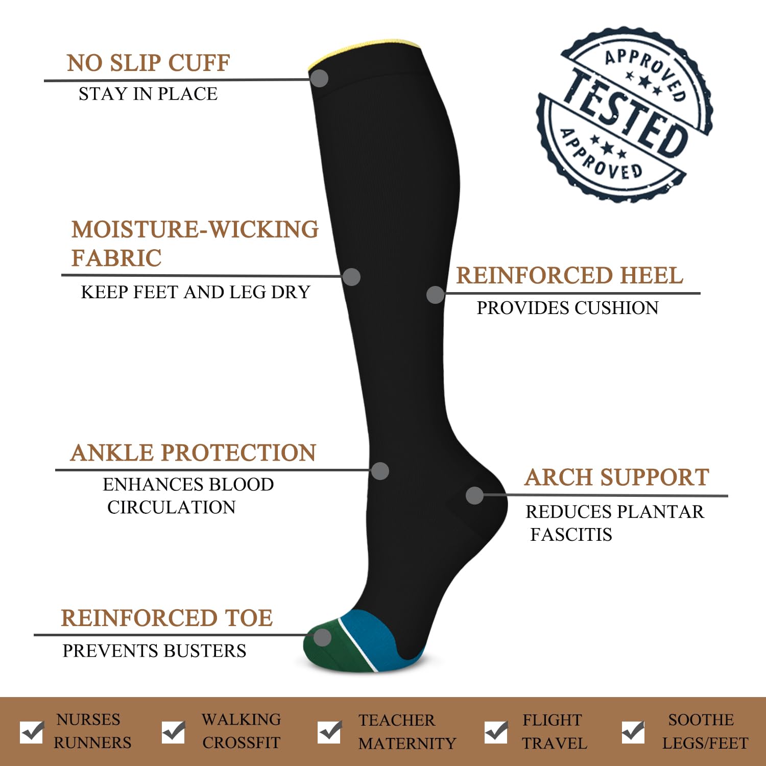 β Companion for Good Health - Compression socks are a must-have for those who work standing for long periods of time or invest heavily in sports and fitness lifestyles. This is an excellent gift for runners, athletes, fitness enthusiasts, office workers, parents or grandparents, joggers, nurses, and doctors.