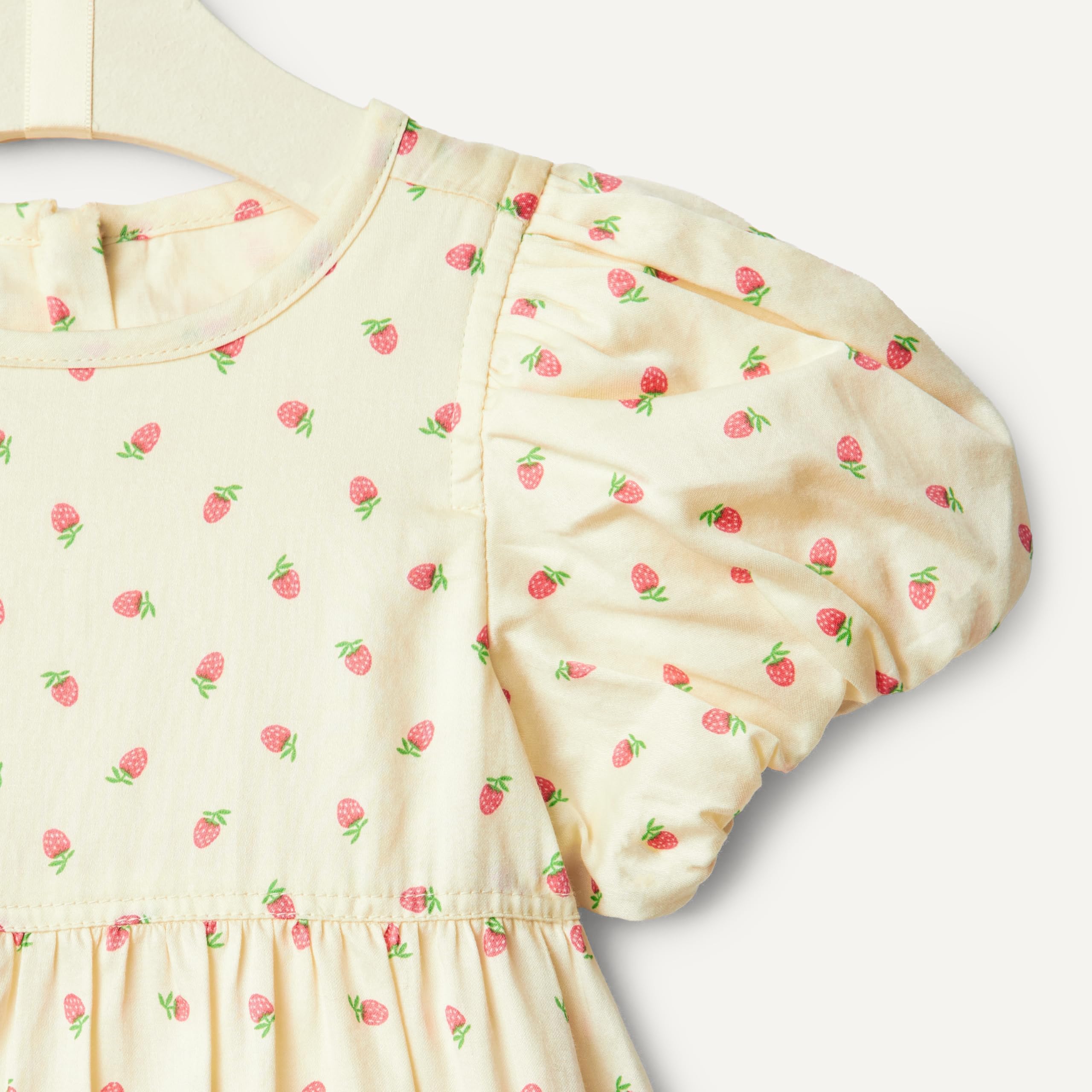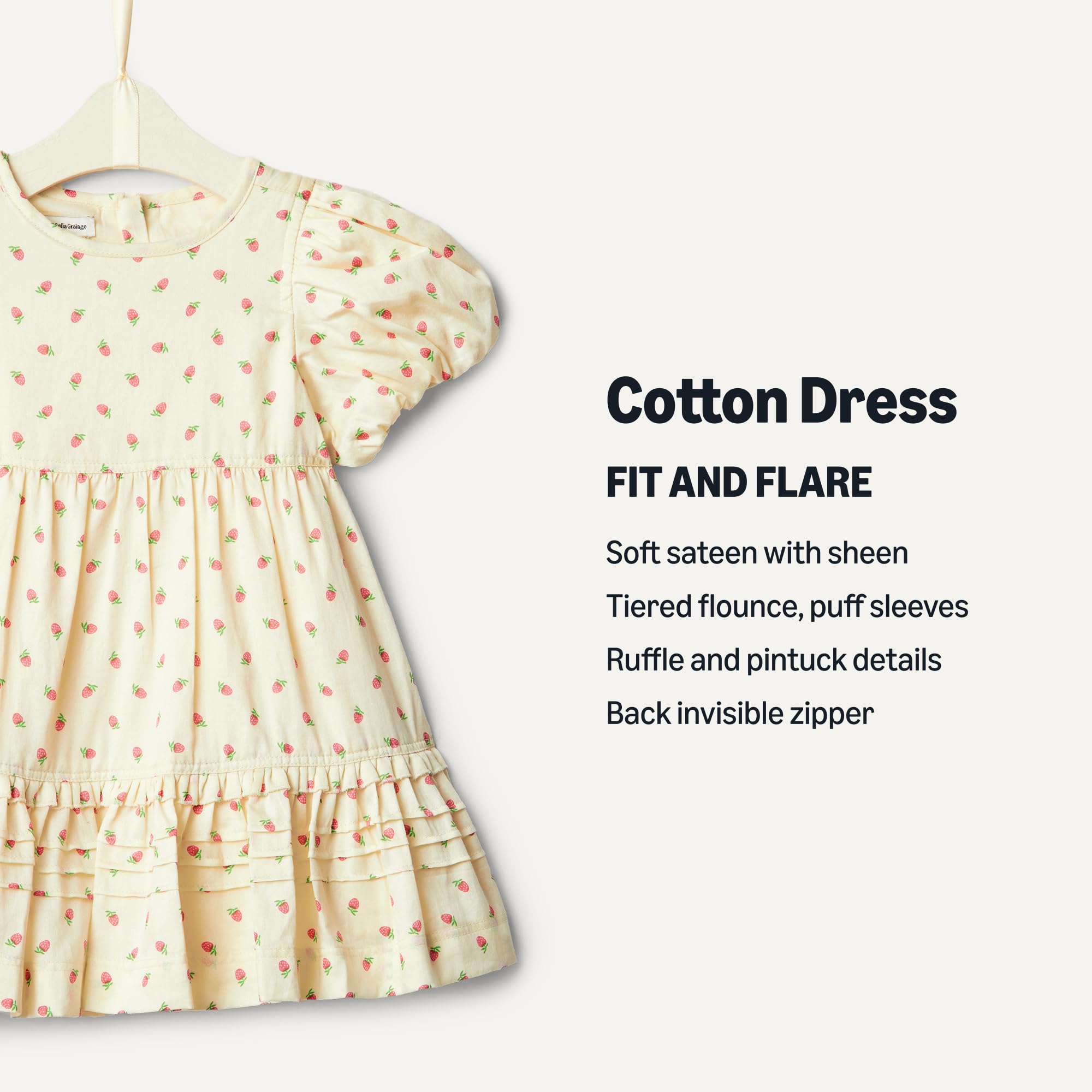 DETAILS: Tiered flounce dress with puff sleeves, delicate ruffle and pintuck detailing, back invisible zipper, fully lined