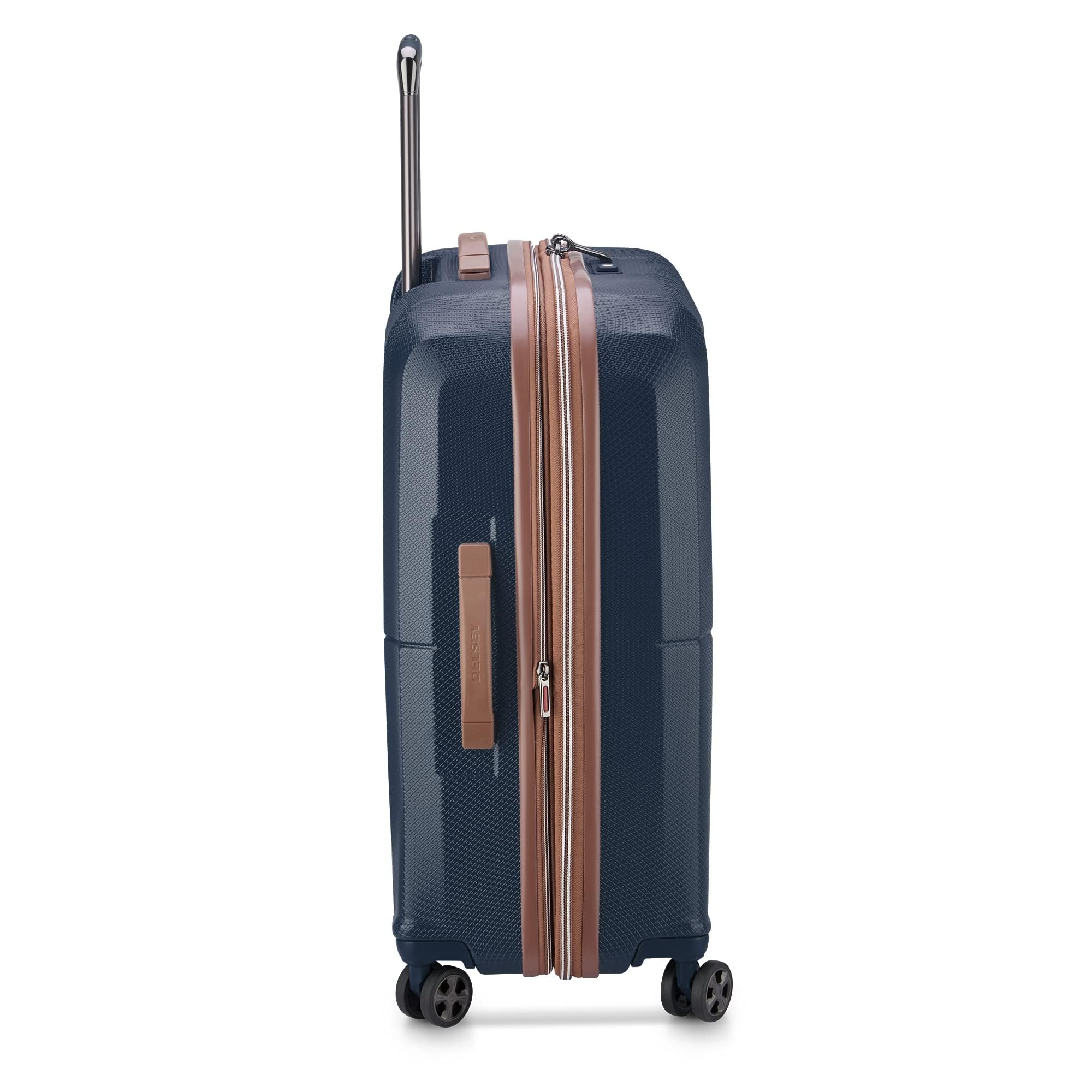 Description Travel in style without sacrificing functionality. With beautiful vegan leather trim and a subtly bold shell design, the Carrousel collection will help you travel securely and confidently. Established in 1946, Delsey has used its flair to marry tradition with innovation, elegance with modernity and design with practicality. We design tomorrow's luggage with inspiration from many places: travelers and their journeys, societal changes and the evolving environment. As a result our luggage keeps getting lighter, better fitted and more environmentally friendly. Enabling our customers to travel elegantly and limiting any negative impact on the environment is our raison d’être.