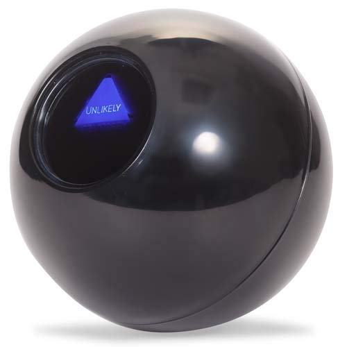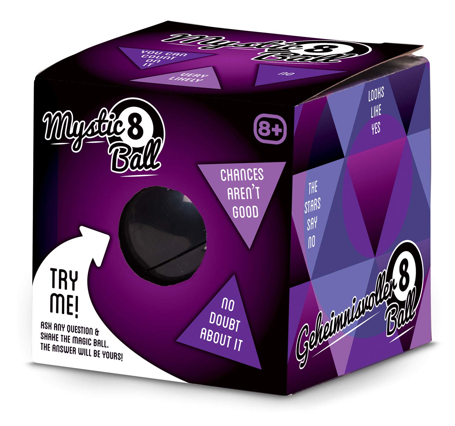 Product Description Fortune teller gadget shaped like a classic pool eight-ball. The ball is filled with water and contains a multi-face dice, with each side featuring the answer to a question. To use it, ask the eight-ball a closed, yes or no type question and then shake it. Turn the ball over to reveal a transparent window with an answer pressed against it. Answers include "Absolutely", "Consult me later", "Chances aren't good" and several others. This is not only a fun novelty toy, but also a pop culture icon featured in the likes of Toy Story, Friends and The Simpsons. Approximate size: 9.5 cm. Suitable for age 8+. Set Contains: 1 x Tobar 21021 MAGIC 8 BALL