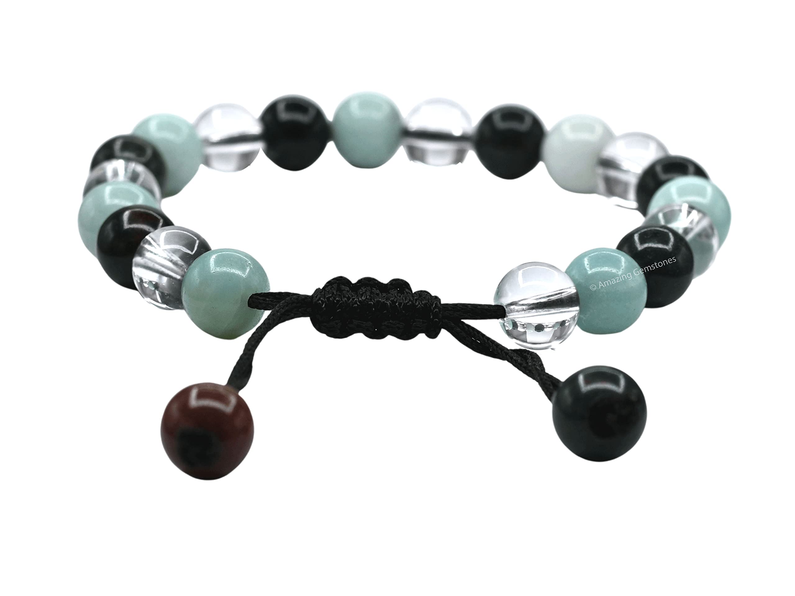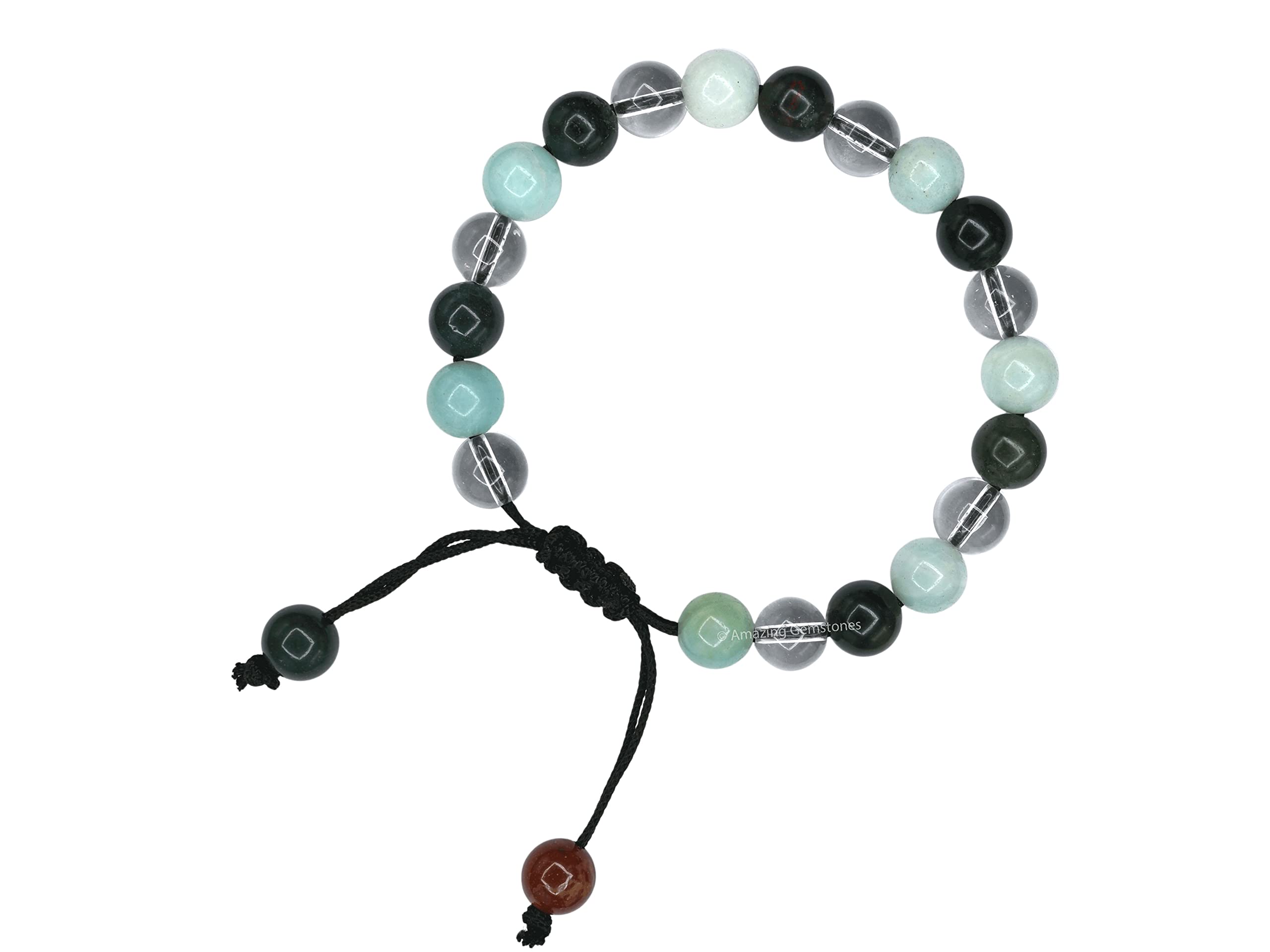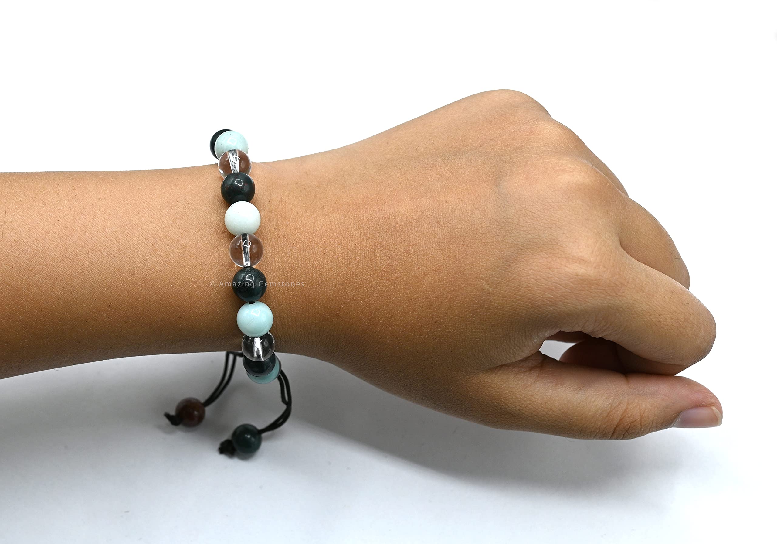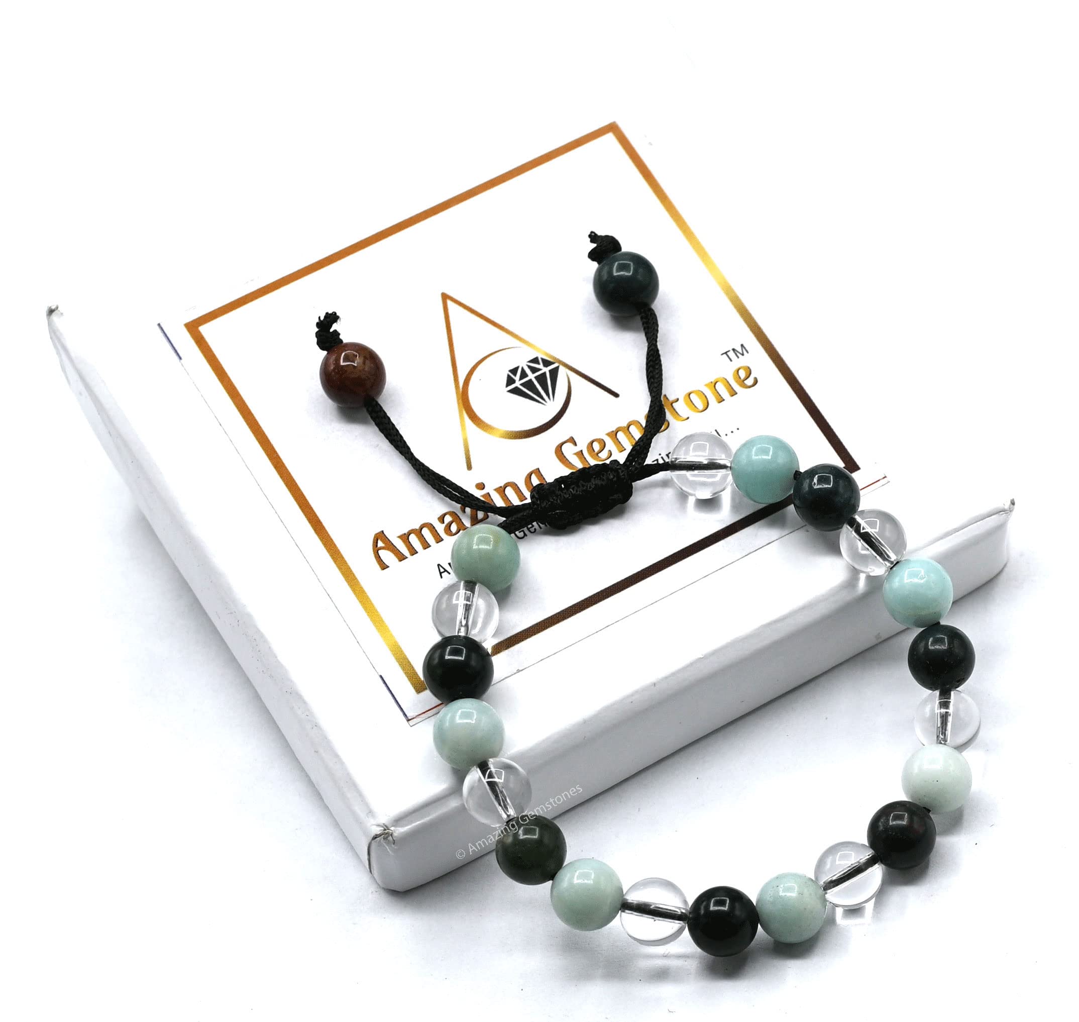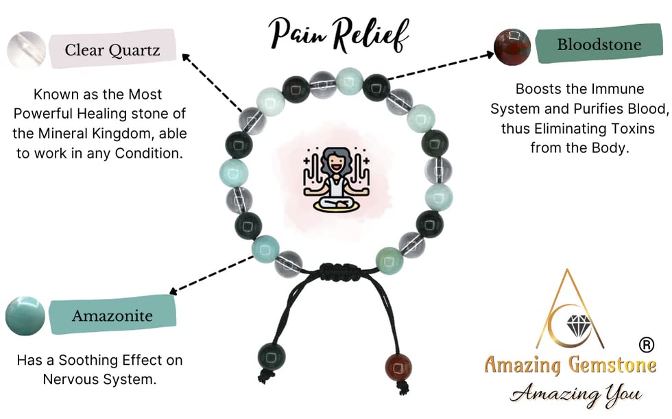 Bracelet for Pain Relief contains real crystal beads Bloodstone, Amazonite and Clear Quartz. Bloodstone for Immunity, Amazonite for Soothing Effect & Clear Quartz for Powerful Healing Stocking Stuffers.