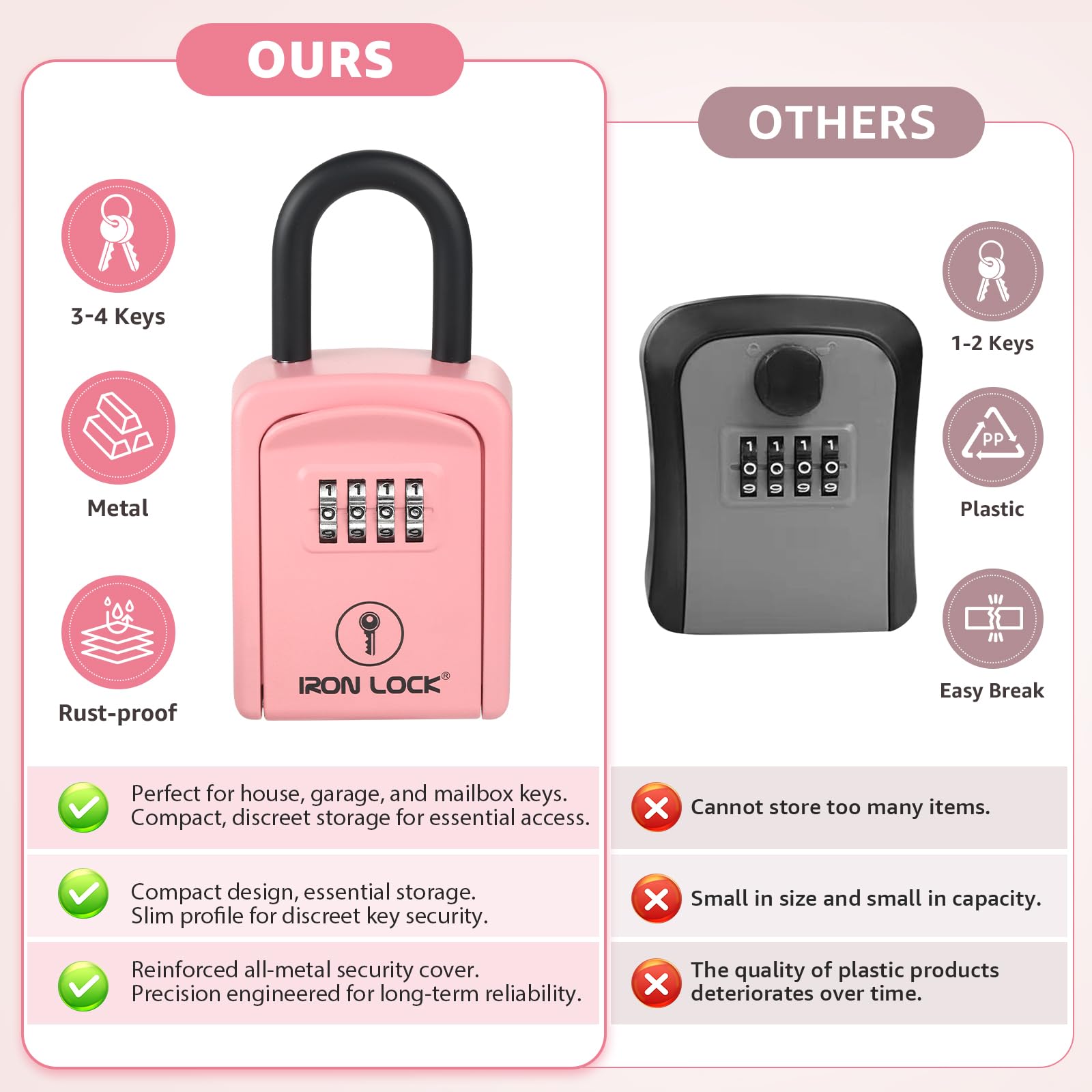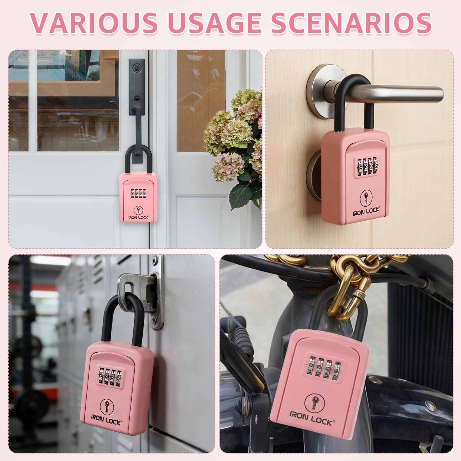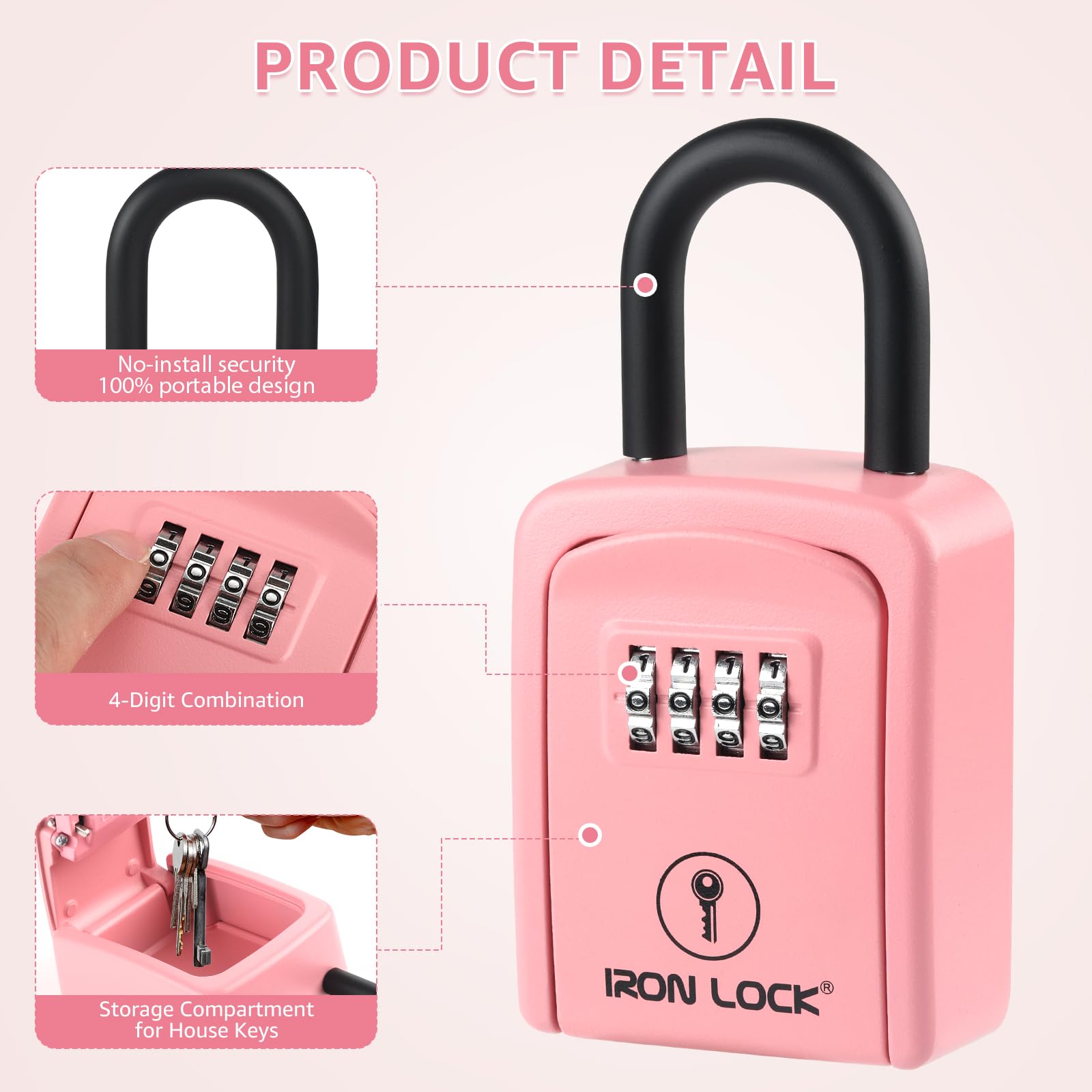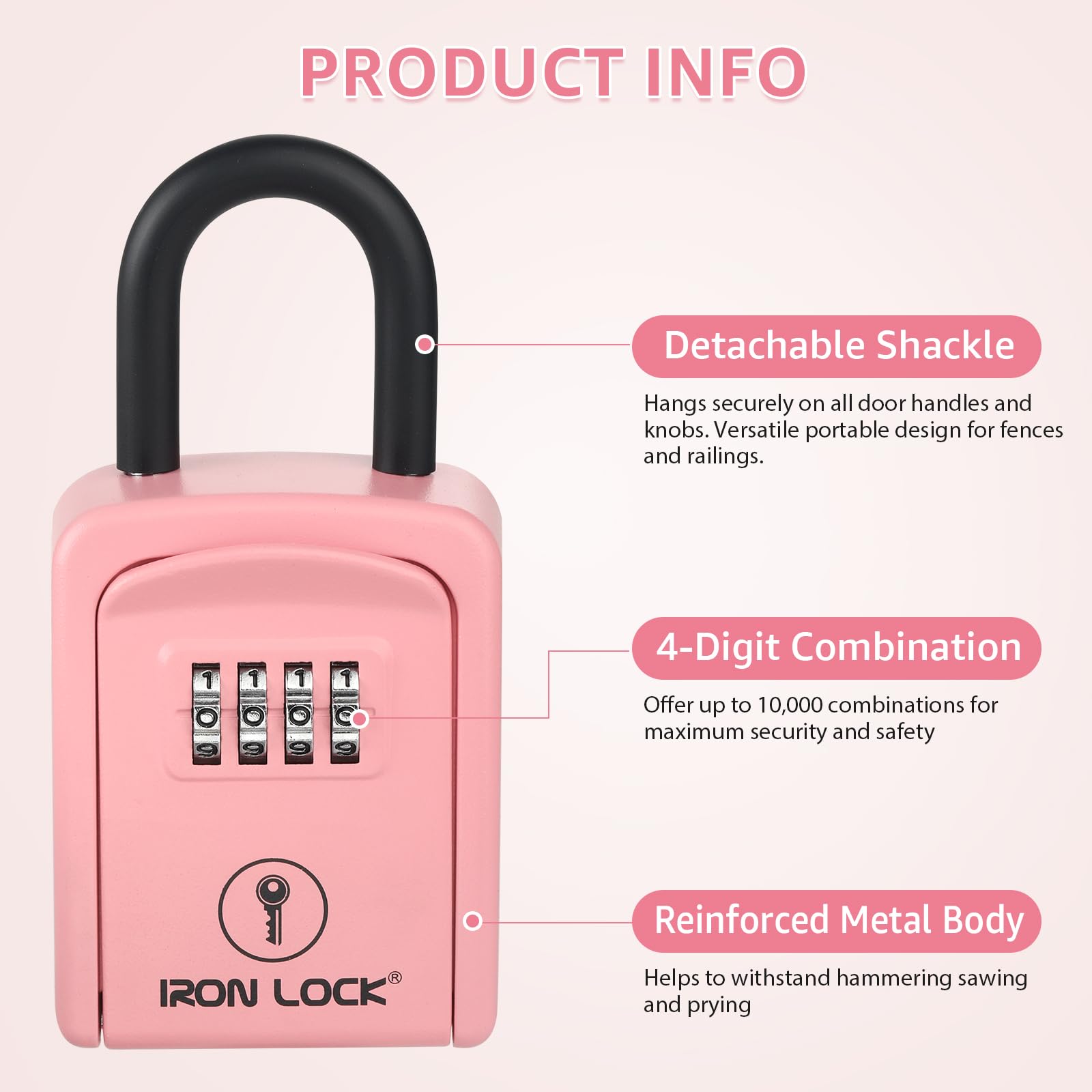 Iron Lock Small Portable Key Lock Box with U Shackle is the simple, secure way to share access—without hiding keys under a mat or leaving them with a neighbor. Designed for flexible, on-the-go placement, this compact lock box uses a strong cable shackle that wraps around railings, fences, gate handles, doorknobs, pipes, and many other fixed points, so you can put it exactly where it’s most convenient and visible for the person who needs access. Secure Key Storage Made Easy Store house keys, mailbox keys, gate keys, or small access cards in a protected compartment, then set your own combination so you control who can open it. It’s ideal for temporary access (a cleaner, dog walker, contractor, or guest) or ongoing access (family members, property managers, or service teams). Portable Cable Shackle = More Placement Options Unlike wall-mounted lock boxes that require drilling, the cable shackle gives you freedom: move it from one location to another, use it at different properties, or reposition it based on the best entry point. Great for apartments, rentals, and anywhere you can’t—or don’t want to—install hardware. Built for Real-World Use Iron Lock is made to hold up to everyday handling with a durable, secure housing and a practical design that helps protect the combination area during use. The compact size keeps it discreet while still providing reliable storage for the essentials. Perfect For Airbnb / vacation rentals & guest access Real estate showings & lockbox access Property management & maintenance teams Cleaners, contractors, dog walkers, caregivers Home backup access for family and emergencies