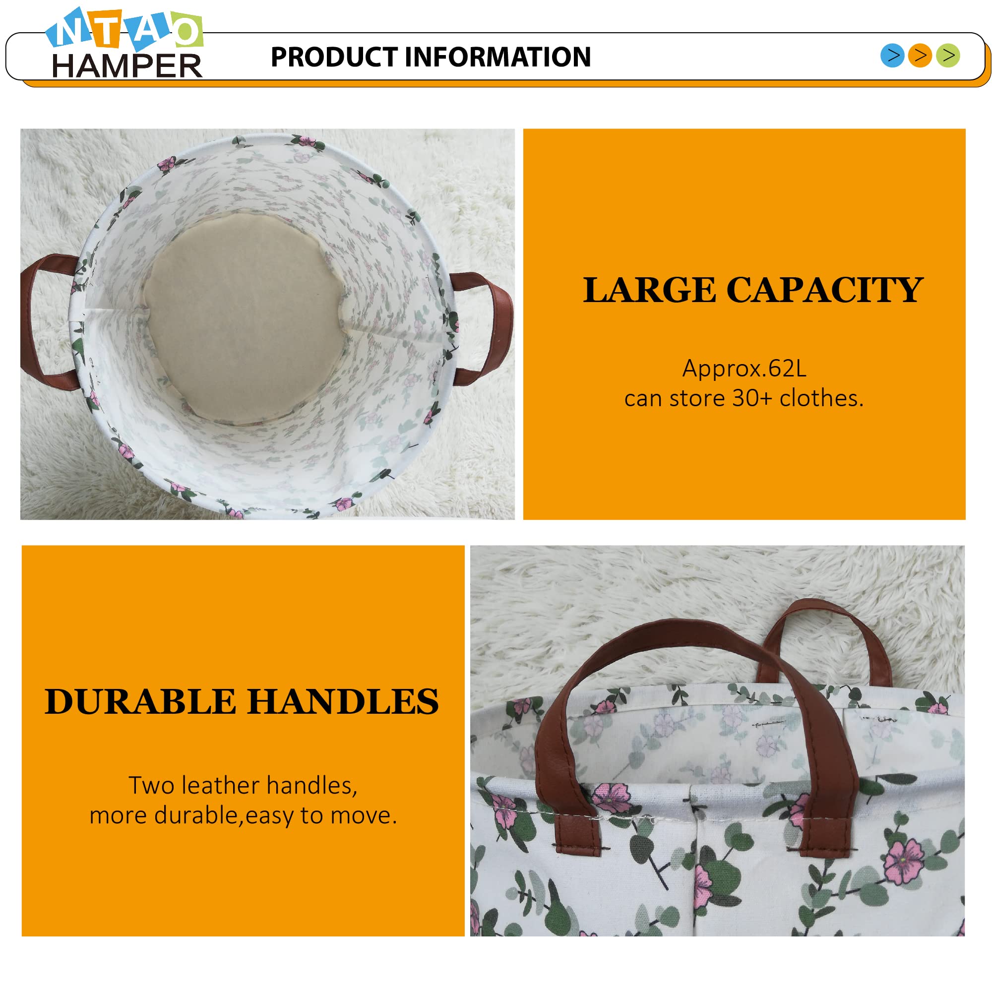 LAUNDRY BASKET SIZE:19.7 inch (H) x 15.7 inch (D),Perfect size for clothes hamper.