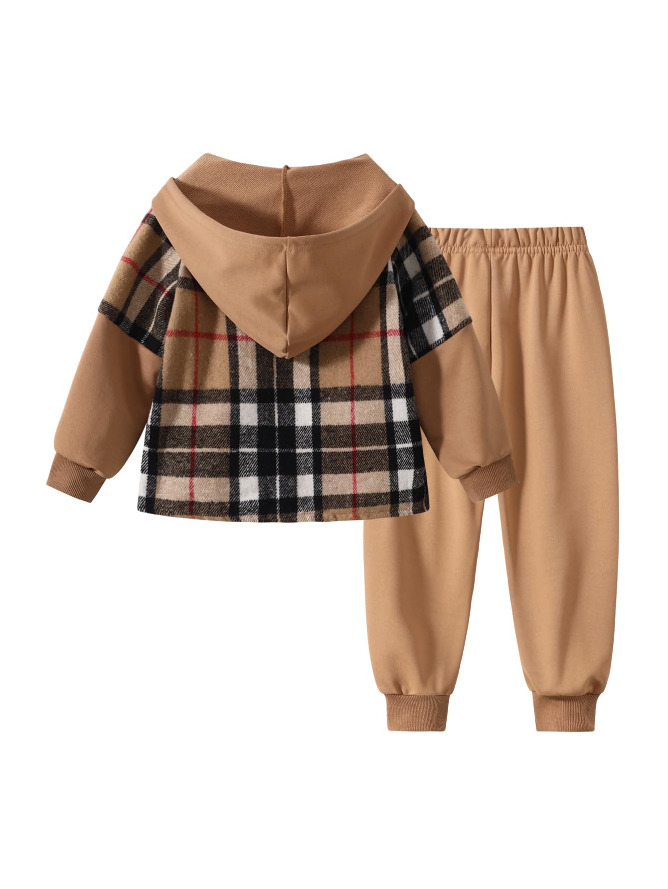 【Package】: 1 x kids' boy flannel plaid hooded sweatshirt + 1 x long Sweatpants.