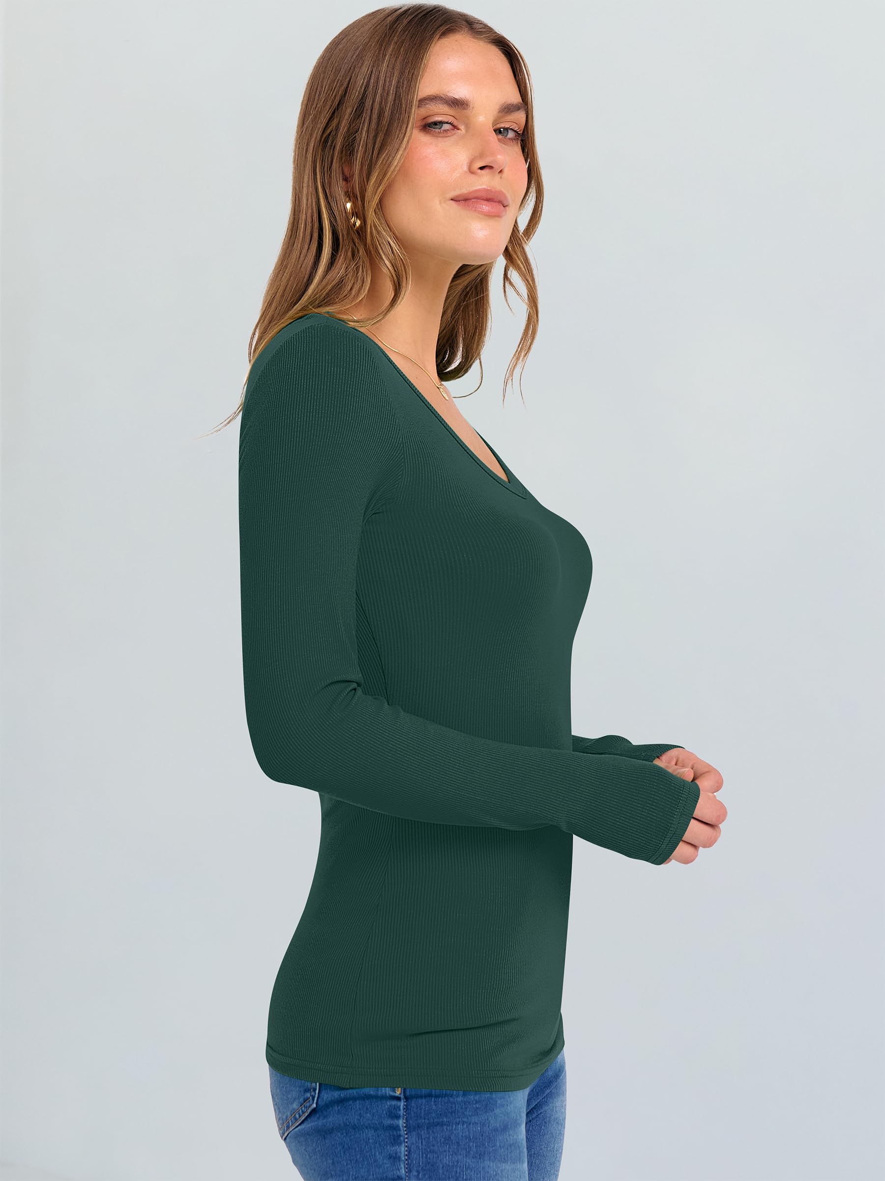 Features - Women's fall Y2k basic v neck knit tops, ribbed knit, long sleeves, and slim fit design.This women's shirts is perfect for daily wear, home, work, street wear, vacation, shopping, cafes and other casual occasions.