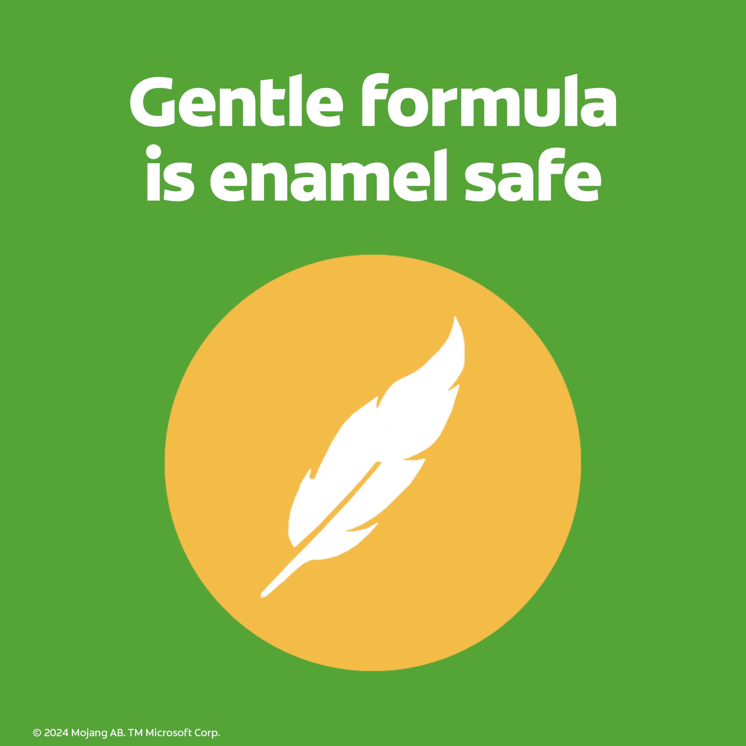 Turn regular brushing time into a fun Minecraft adventure using Colgate Kids Minecraft Toothpaste with Fluoride. Designed for children ages 2 and older, this kids anticavity toothpaste offers a Mild Bubble Fruit bubblegum toothpaste flavor that makes brushing teeth fun. This Minecraft themed childrens toothpaste comes in a stand-up tube with a flip-top cap for easy opening, closing, and storage on the counter. The fluoride kids toothpaste offers cavity protection and is an ADA accepted toothpaste for kids. This Colgate kids toothpaste contains fluoride, a clinically proven ingredient that fights cavities and provides cavity protection for developing teeth. In addition to fighting cavities, this kids fluoride toothpaste also helps strengthen teeth and is gentle on kids’ tooth enamel. Plus, parents will appreciate this kids cavity protection toothpaste is sugar free, gluten free, paraben free, and vegan. Make brushing feel like an awesome Minecraft adventure with the Colgate Minecraft Kids Toothpaste with Fluoride. This kids fluoride toothpaste is ideal for parents who want an effective anticavity toothpaste for their young kids or toddlers. Help build healthy oral care habits with Colgate Minecraft Kids Toothpaste with Fluoride.