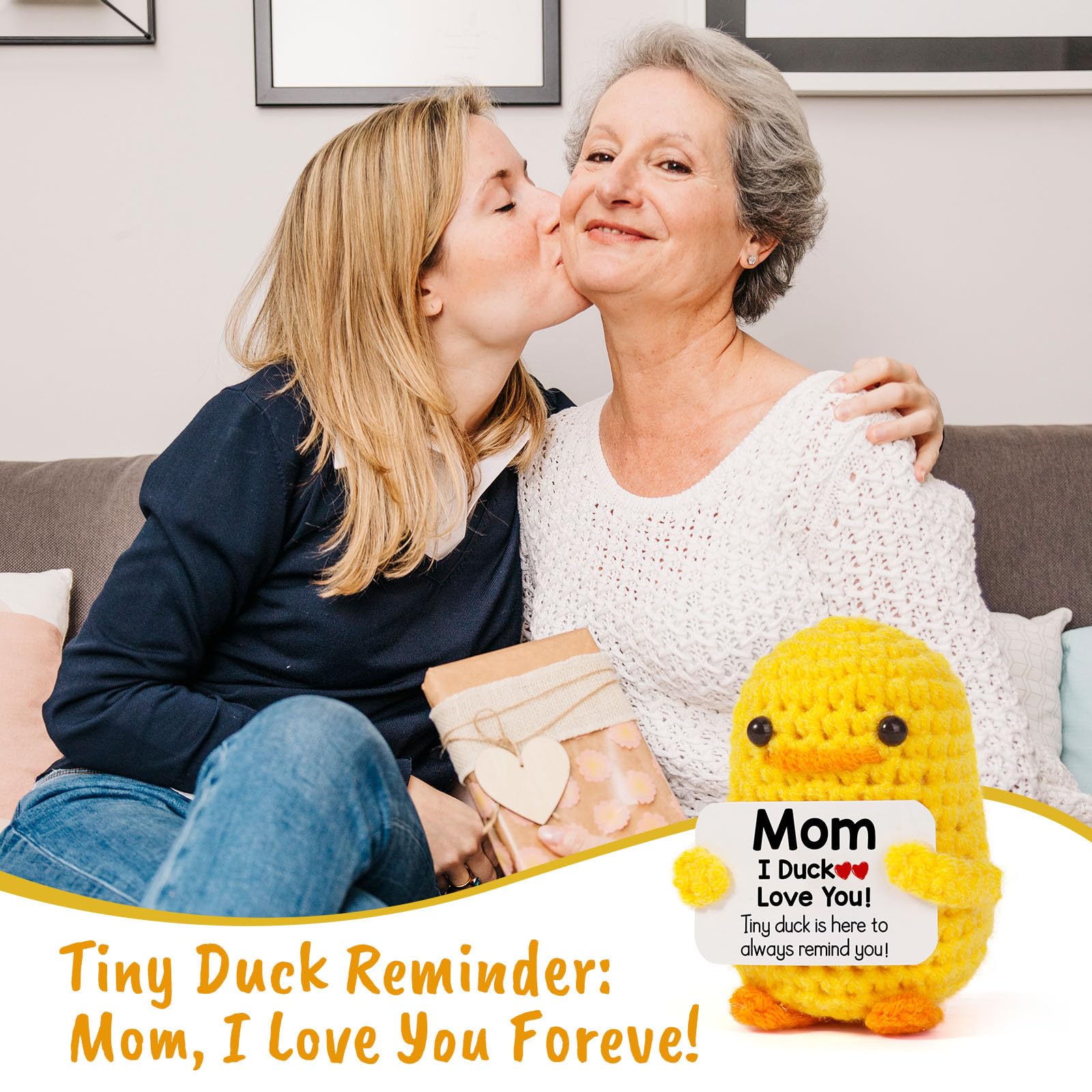 Funny Gifts for Mom: A delightful pocket companion that brings smiles and spreads positive vibes wherever your mom goes! This adorable knitted duck is more than just a plush doll. With its special reminder card, it becomes a unique and creative way to express your love for your mother.