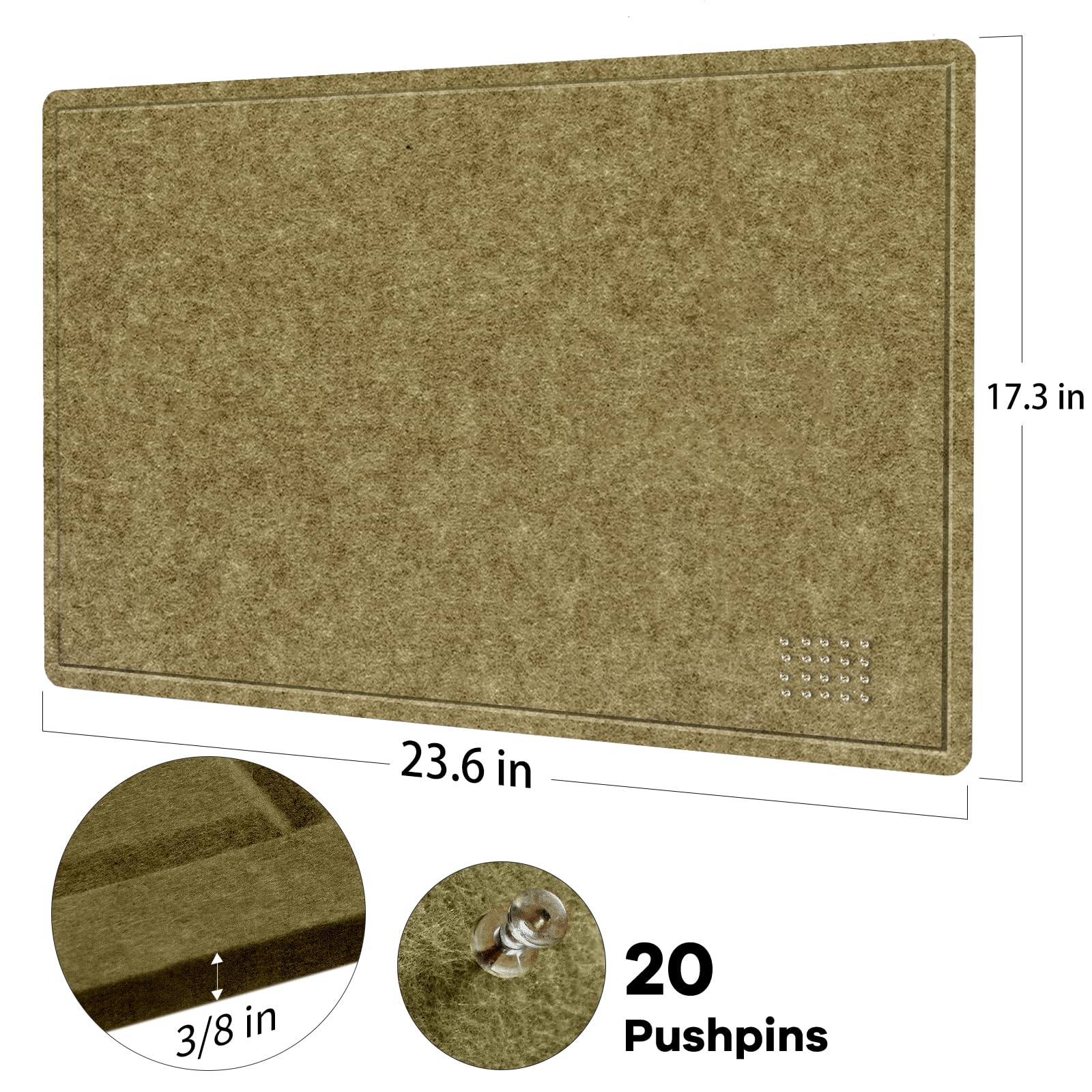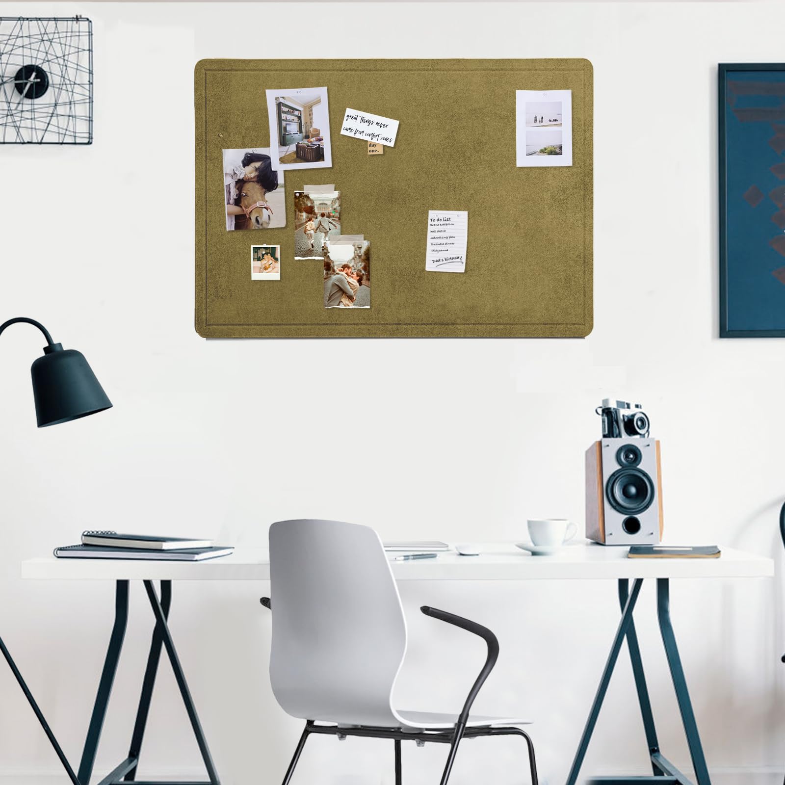 Bulletin Board, 24 x 18 inches Felt Board Decorative Pin Board, Cork Board Alternative for Wall, Foldable Photo Board Self-Adhesive Vision Board Mood Board with 20 Pushpins - Olive