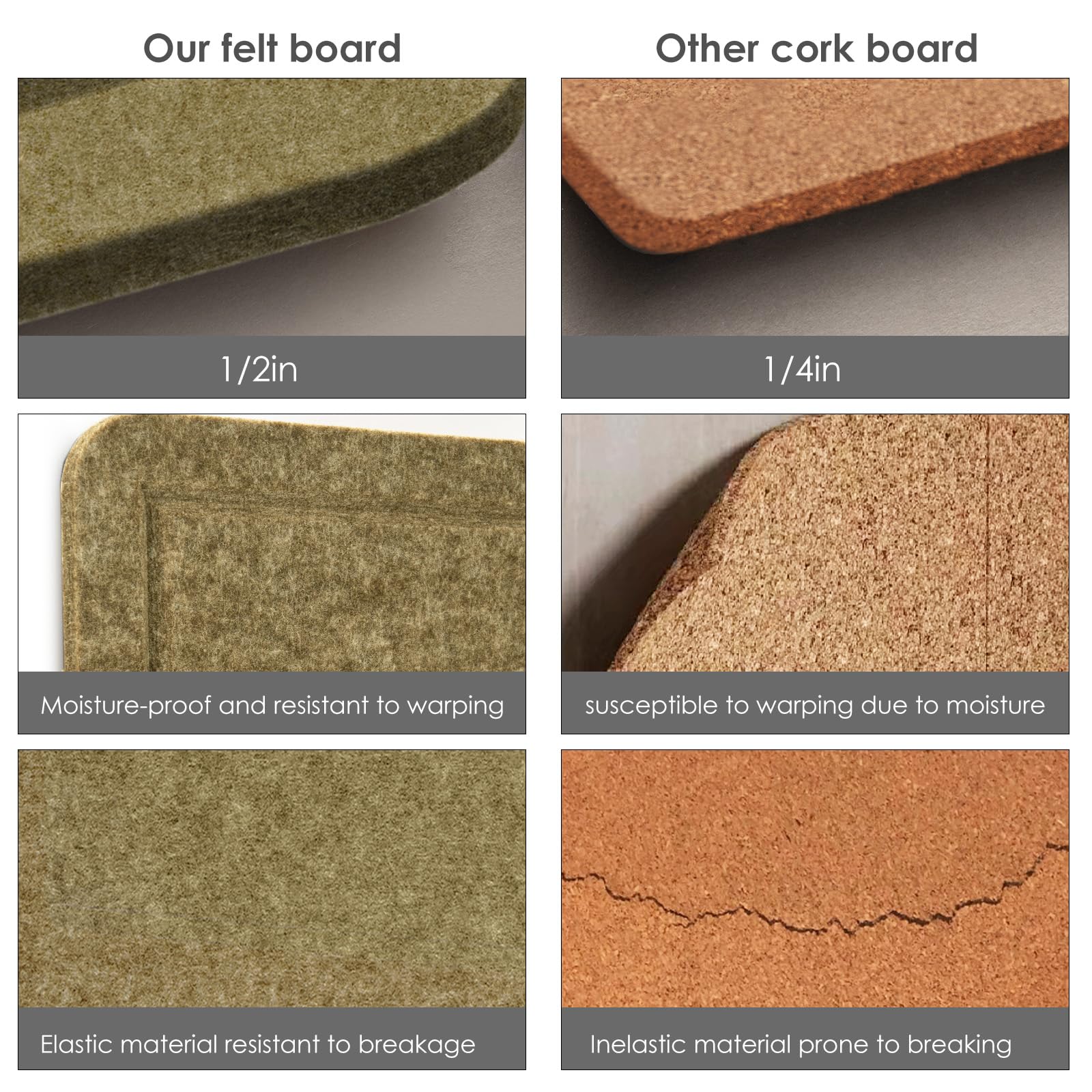 Lightweight & Long-Lasting: Made from premium polyester fiber, this felt decor board is lightweight yet sturdy. With a 0.35-inch thickness, it holds push pins securely. The self-healing surface withstands repeated use, keeping it looking like new.