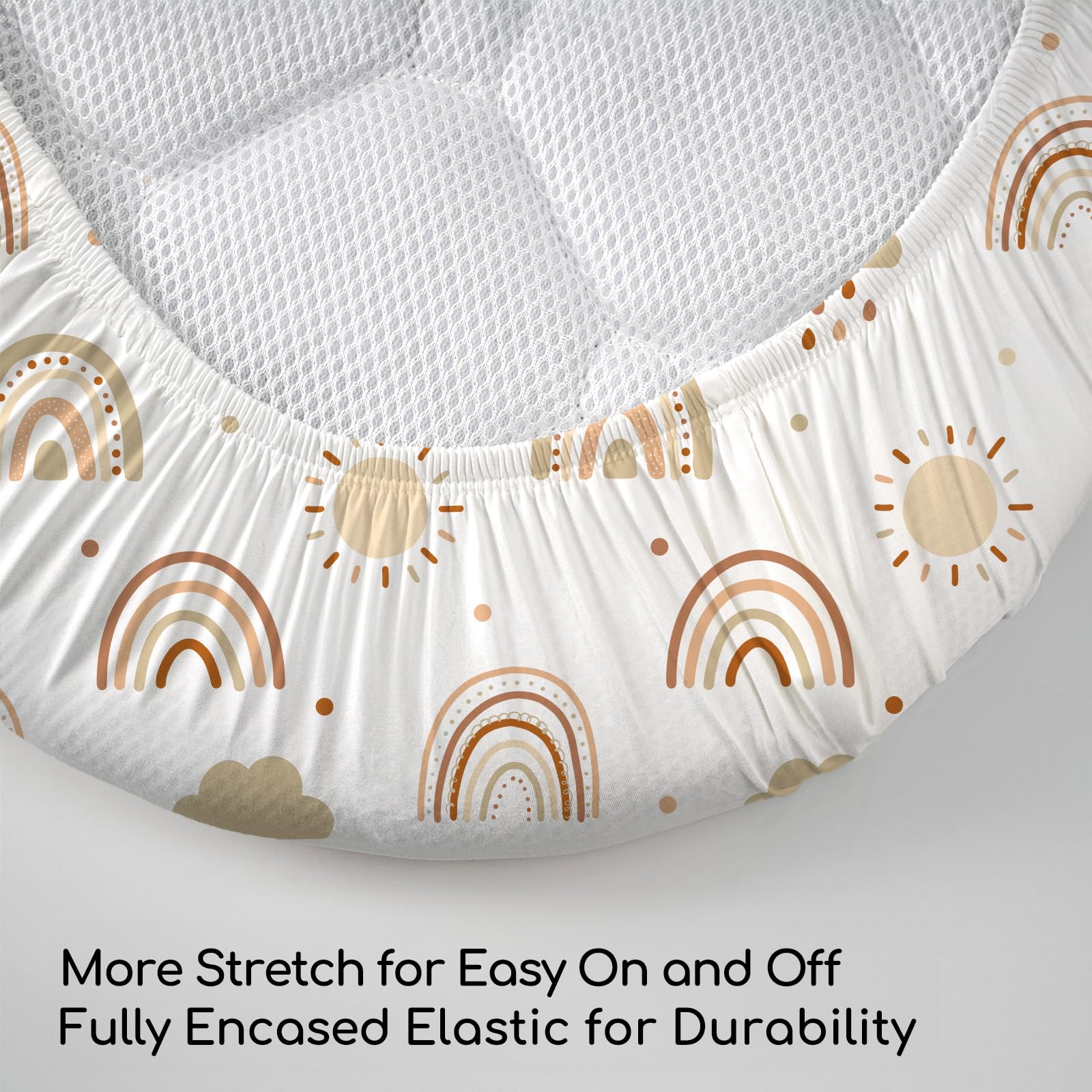 Snug & Secure Fit: Our baby bassinet sheets feature a 360Β° premium elastic band for full coverage. Even when babies roll or crawl, the bassinet sheet stay securely fastened to the mattress, ensuring a safe sleep environment.