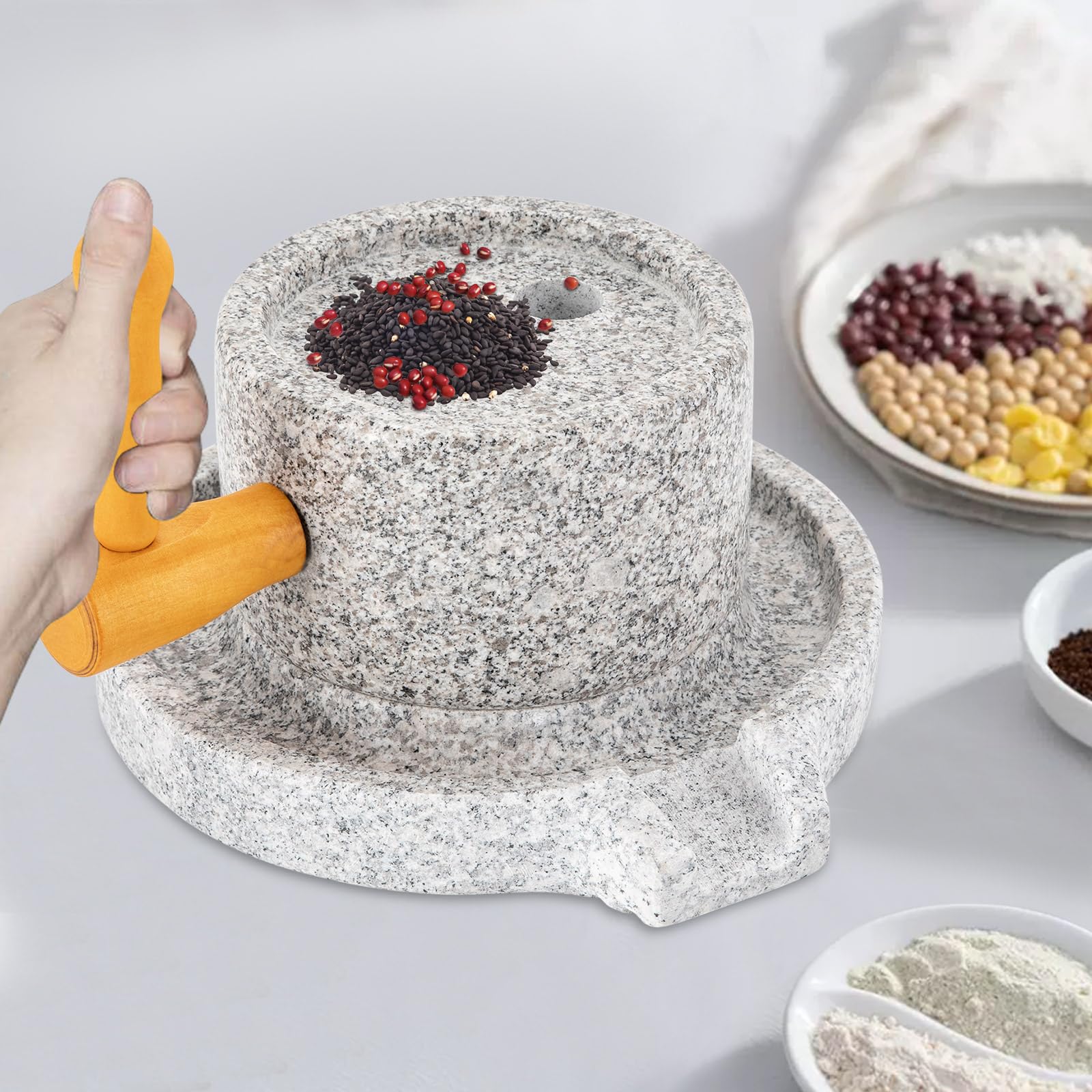 Wide Application: The millstone can grind dry and wet foods including but not limited to wheat flour, peppers, seeds, nuts, corn, spices, soybeans, green beans, prickly beets, and other small grains