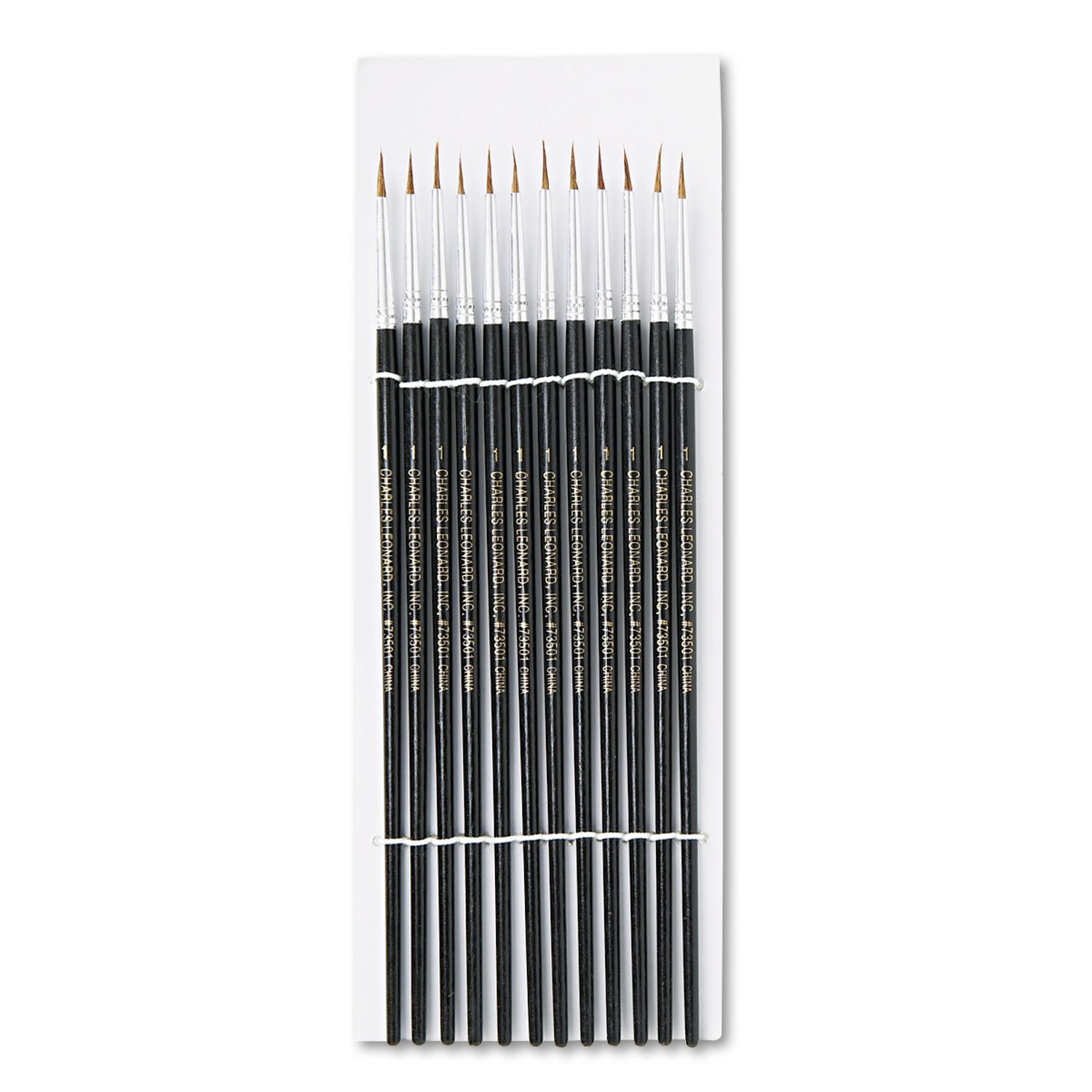Pointed round head brushes feature fine camel hair. Seamless aluminum ferrules double crimped to standard length hardwood handles. Great for all-around school, hobby and craft use.