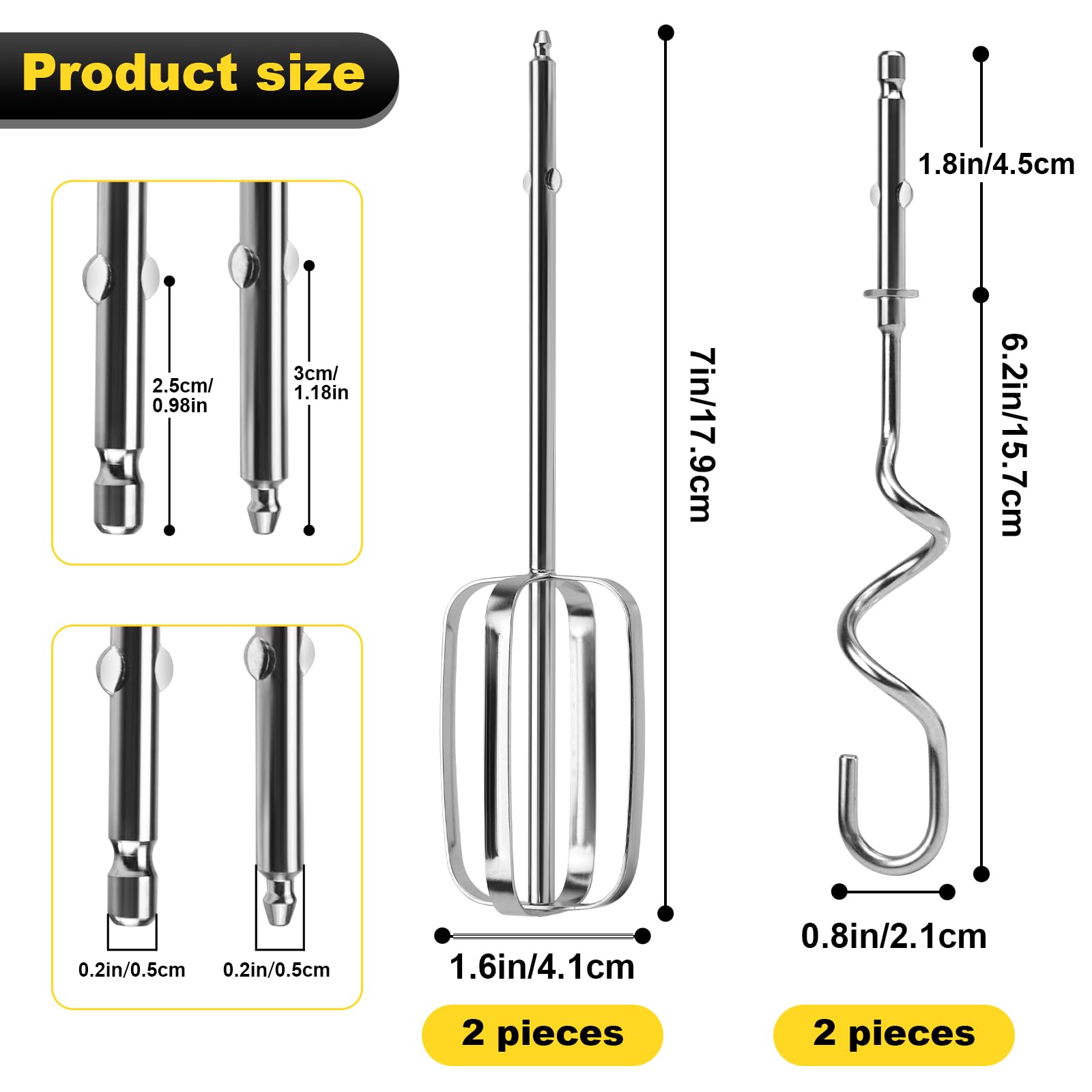 Hand Mixer Attachments Set Materials: stainless steel. Color: silver. Wash: dishwasher/hand wash. Package List: 2x beaters, 2x dough hooks. Application: Compatible with Hamilton Beach Hand Mixer Replace Parts 62682RZ 62692 62695V 64699.