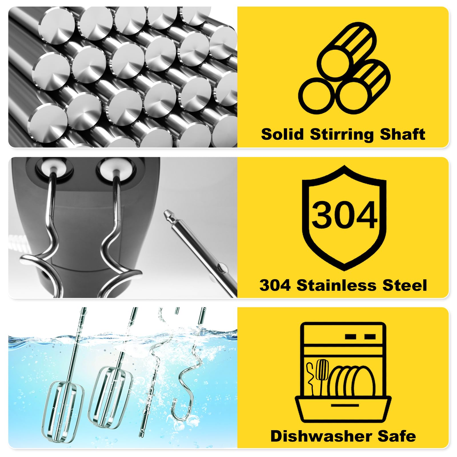 [MATERIAL]: 304 stainless steel replacement beaters, not easy to stain, easy to clean, dishwasher safe. Upgraded solid stirring shaft, thickened stirring blades, and more durable.