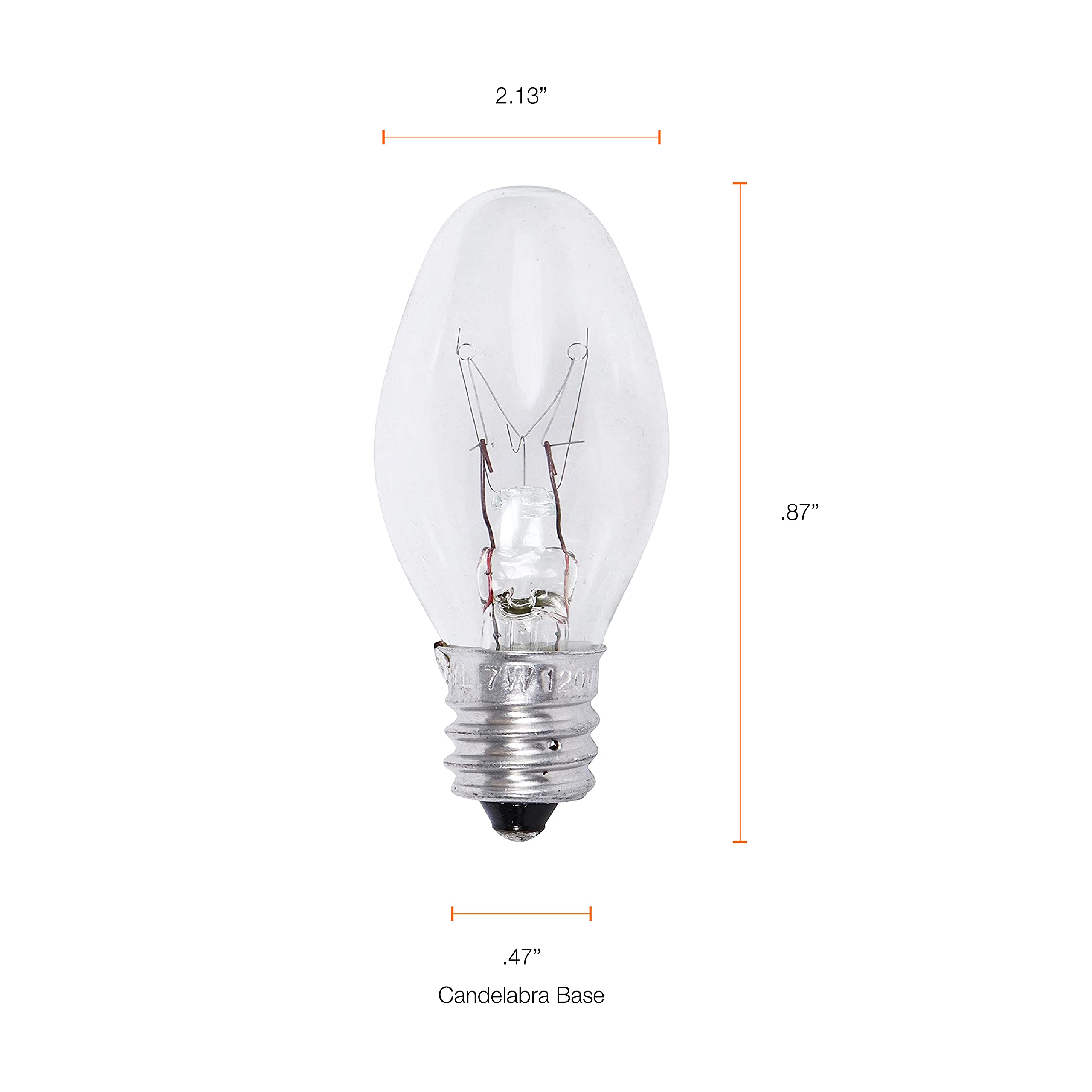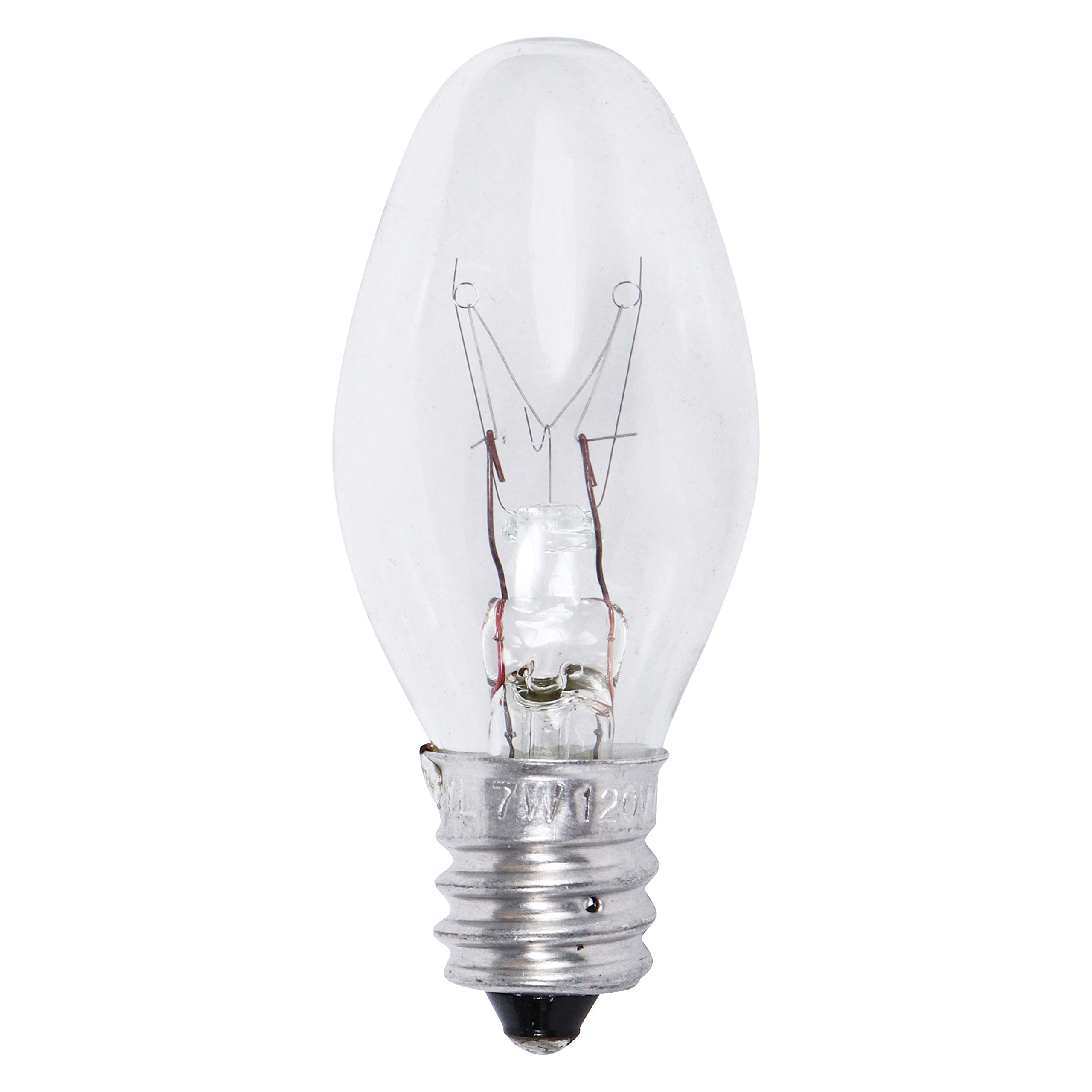 SYLVANIA incandescent C7 night light shaped bulb has a clear finish and candelabra base. This value pack comes with 4 bulbs that are 7 watt and 120 volt.