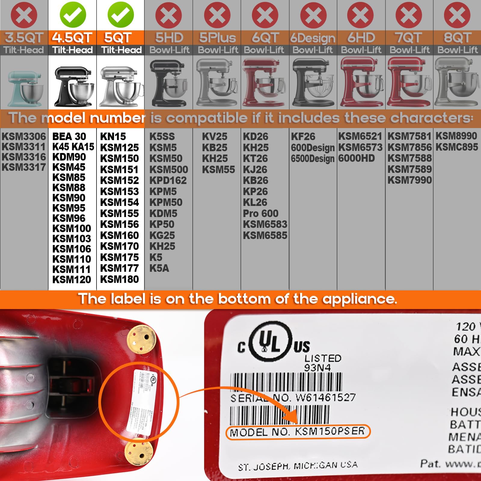 PQPO Mixer Bowl Covers - Designed for use with the 4.5-5 quart Tilt-Head bowl-lift stand mixer, These bowl lids effectively keep ingredients inside the bowl, preventing light ingredients like flour from flying out and keeping kitchen countertops clean.