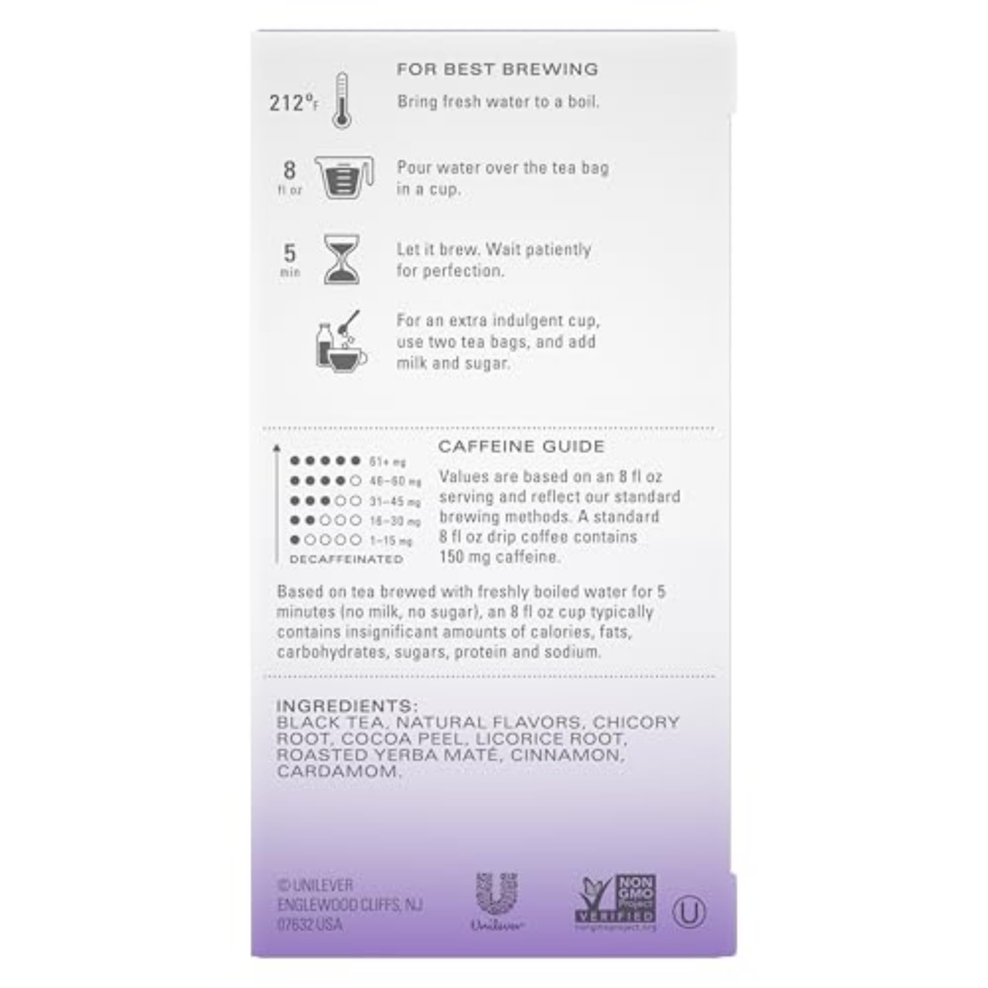 EASY TO MAKE: Bring fresh water to a boil at 212 degrees Fahrenheit for five minutes, pour eight fluid ounces of water over the tea bag, and let it steep patiently for a perfect brew, or add two tea bags and milk and sugar for an extra indulgence