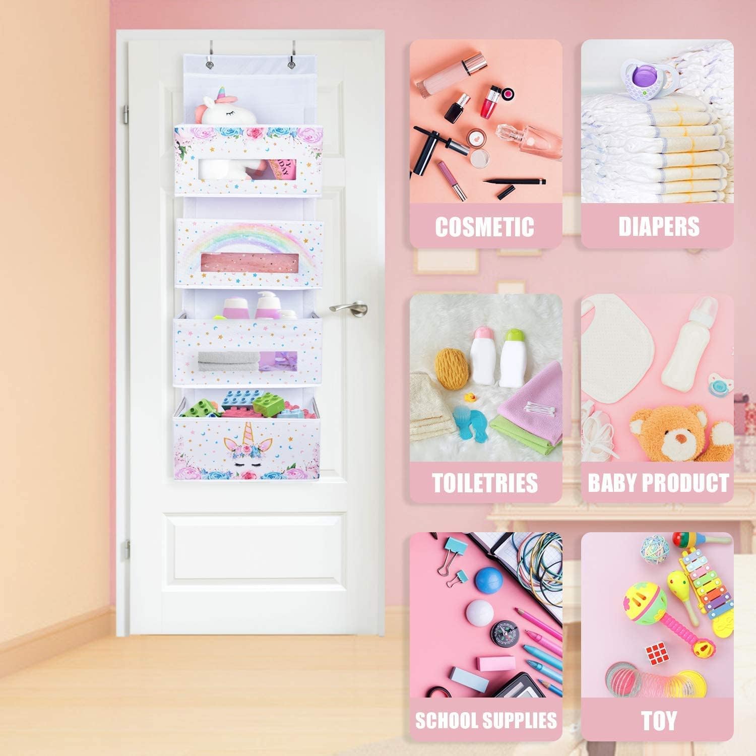 UNIQUE DESIGN - Pink unicorn with rainbow, flowers design, perfect for girl’s over door organizer and unicorn theme decor. Hope the beautifully designed hanging organizer will be a perfect decoration for your kid's room