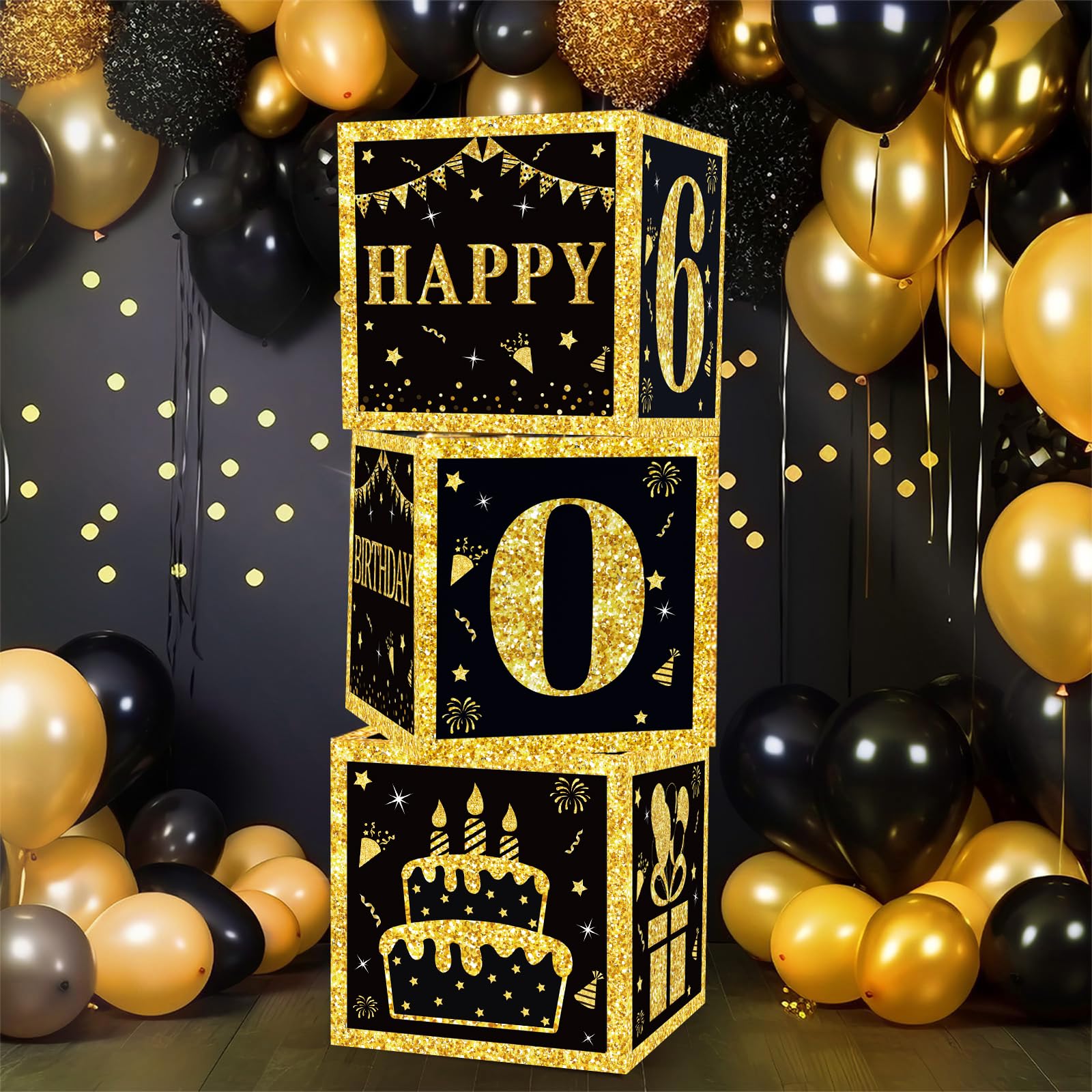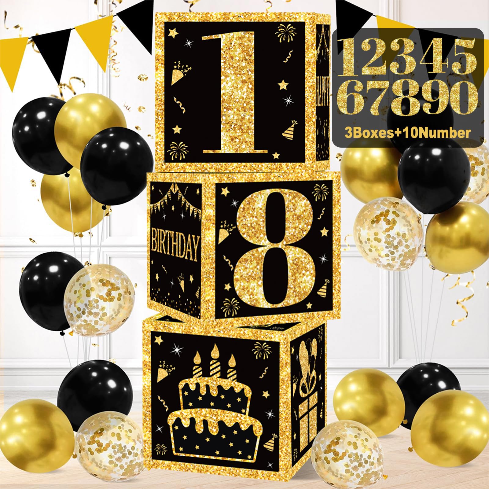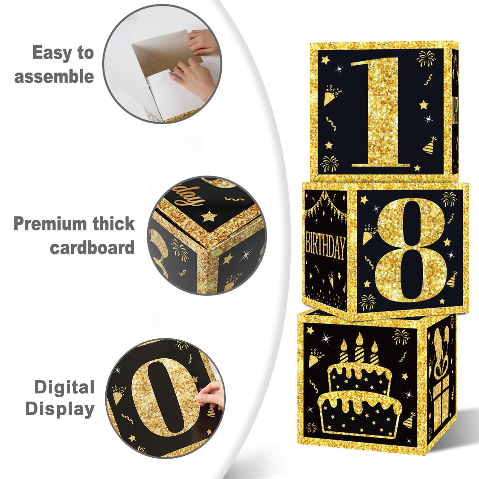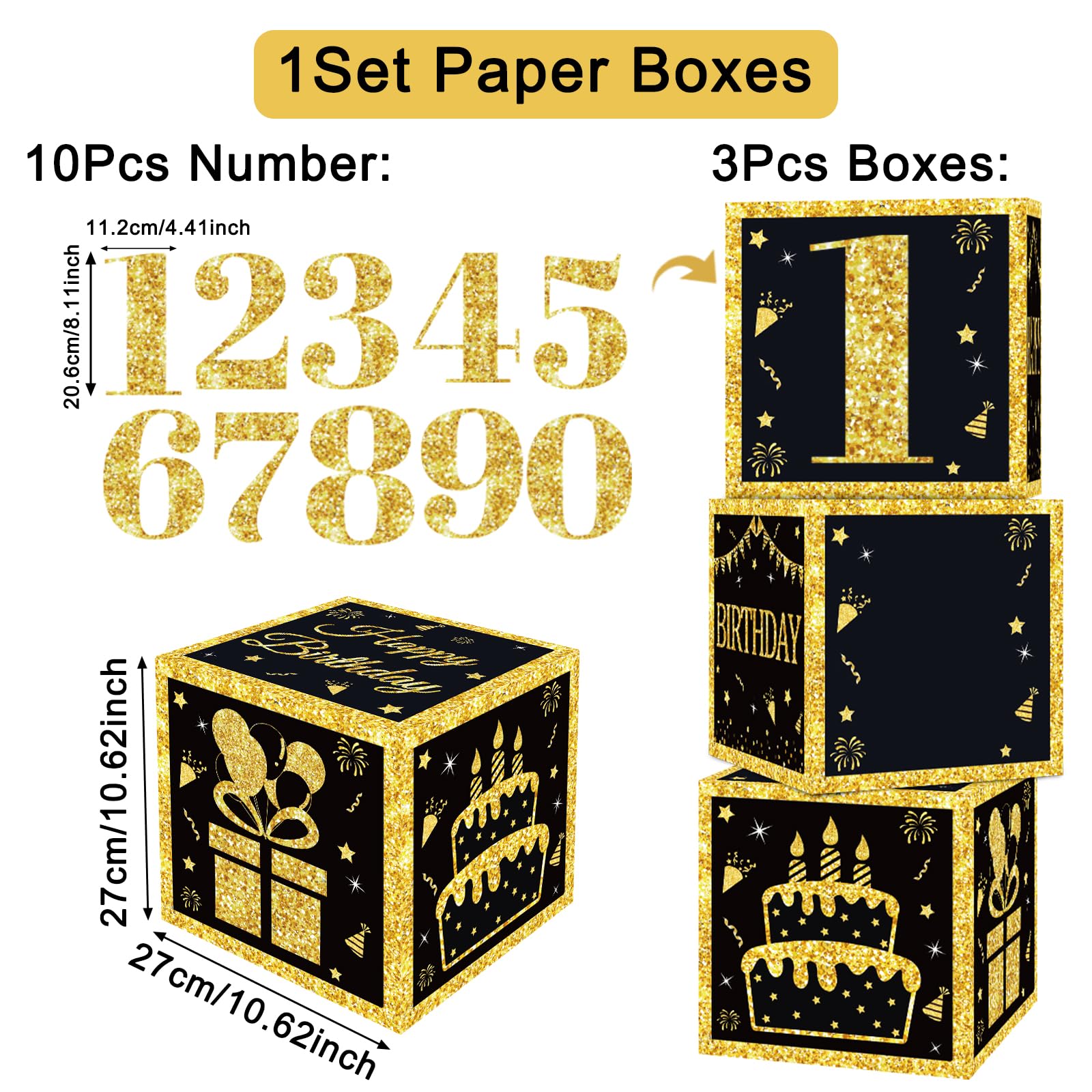 You Will Get - 3 black gold boxes (size 10.6“*10.6“*10.6“) for birthday party, which with 0-9 numbers, making them almost perfect for celebrating any age. Decorate your party with these boxes, make it more eye-catching, impress your guests, and most importantly let your kid and family enjoy this party