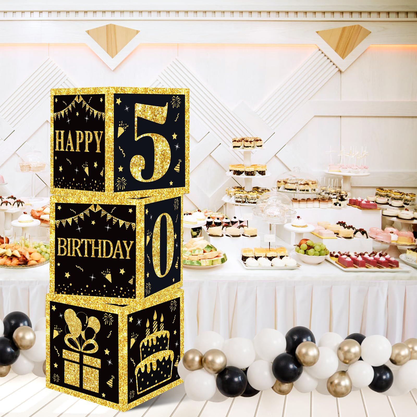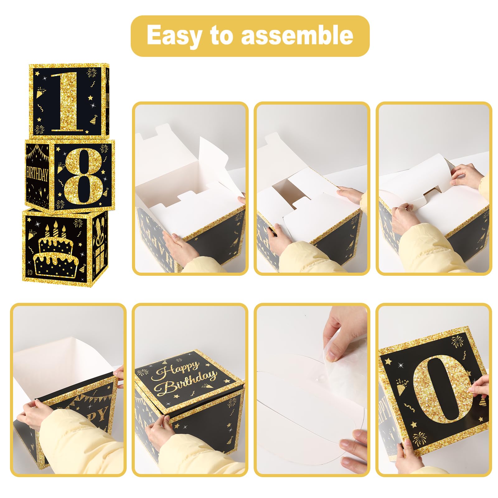 Easy Assembly Decorations -The party boxes come pre-folded for quick and hassle-free assembly. Numbers 0-9 are included, allowing you to customize the boxes for any age. Simply stick the numbers on the boxes, and your perfect party decor is ready in minutes. Whether it's a 1st birthday, sweet 16, or a milestone 50th, these boxes add a touch of elegance to your celebration with minimal effort