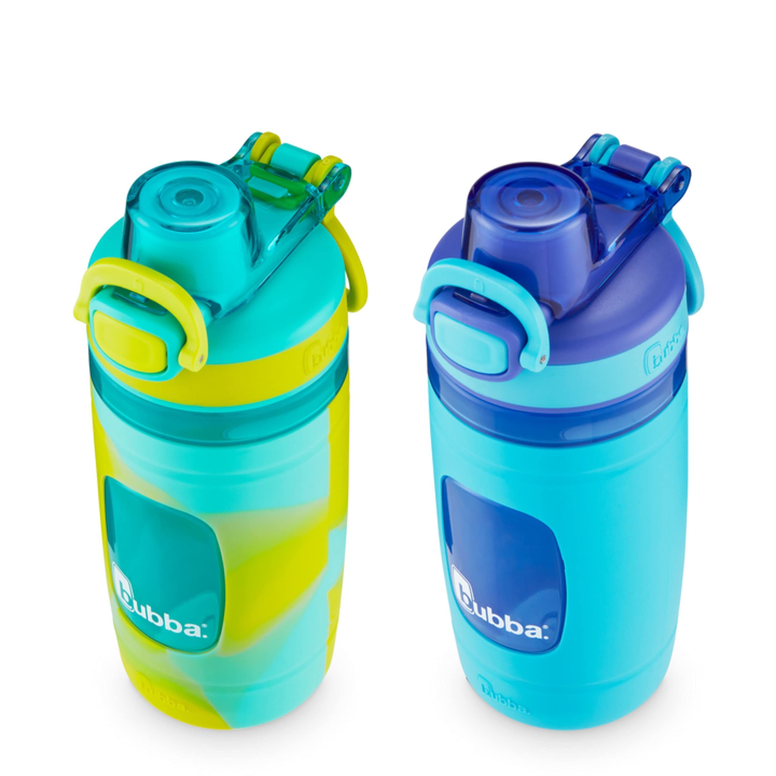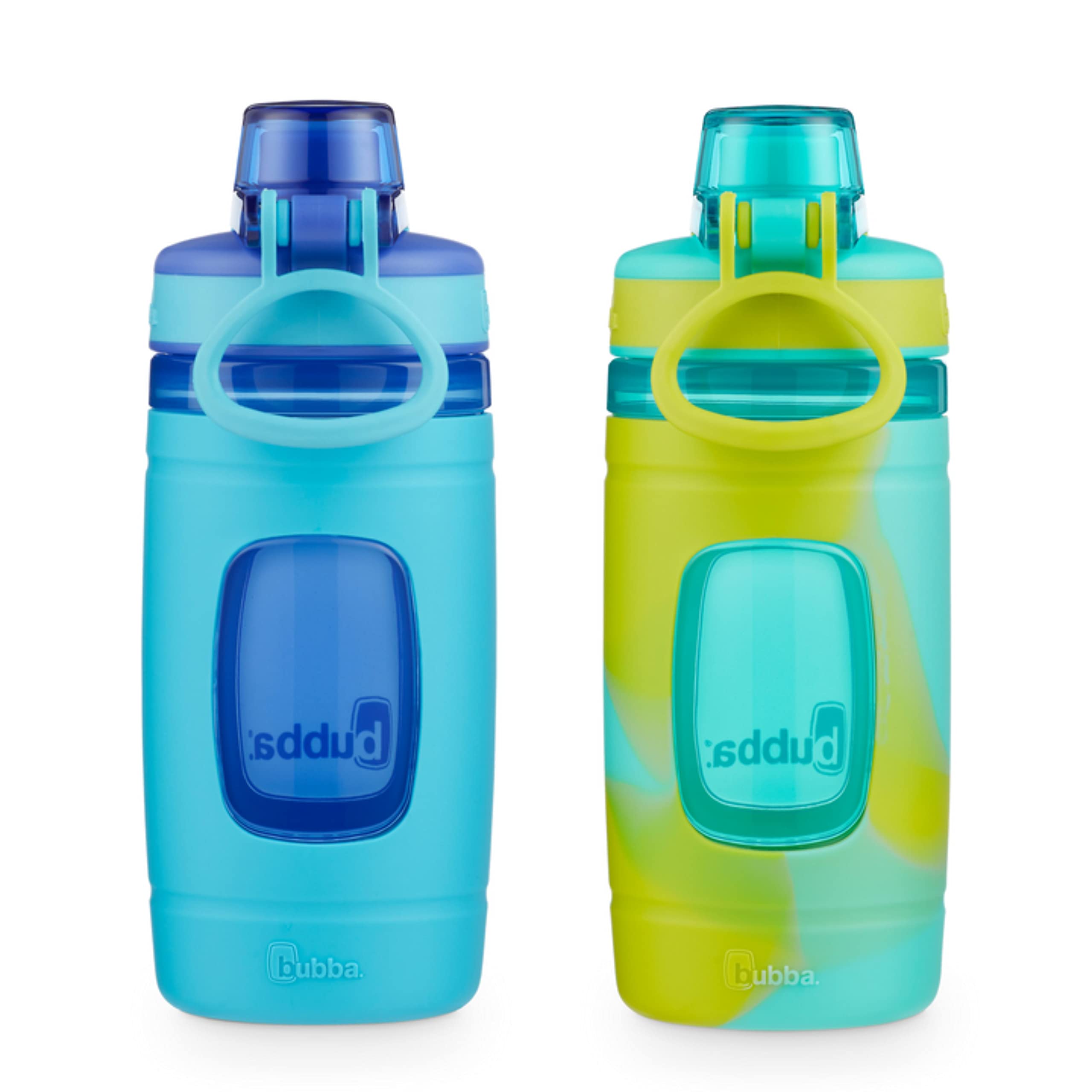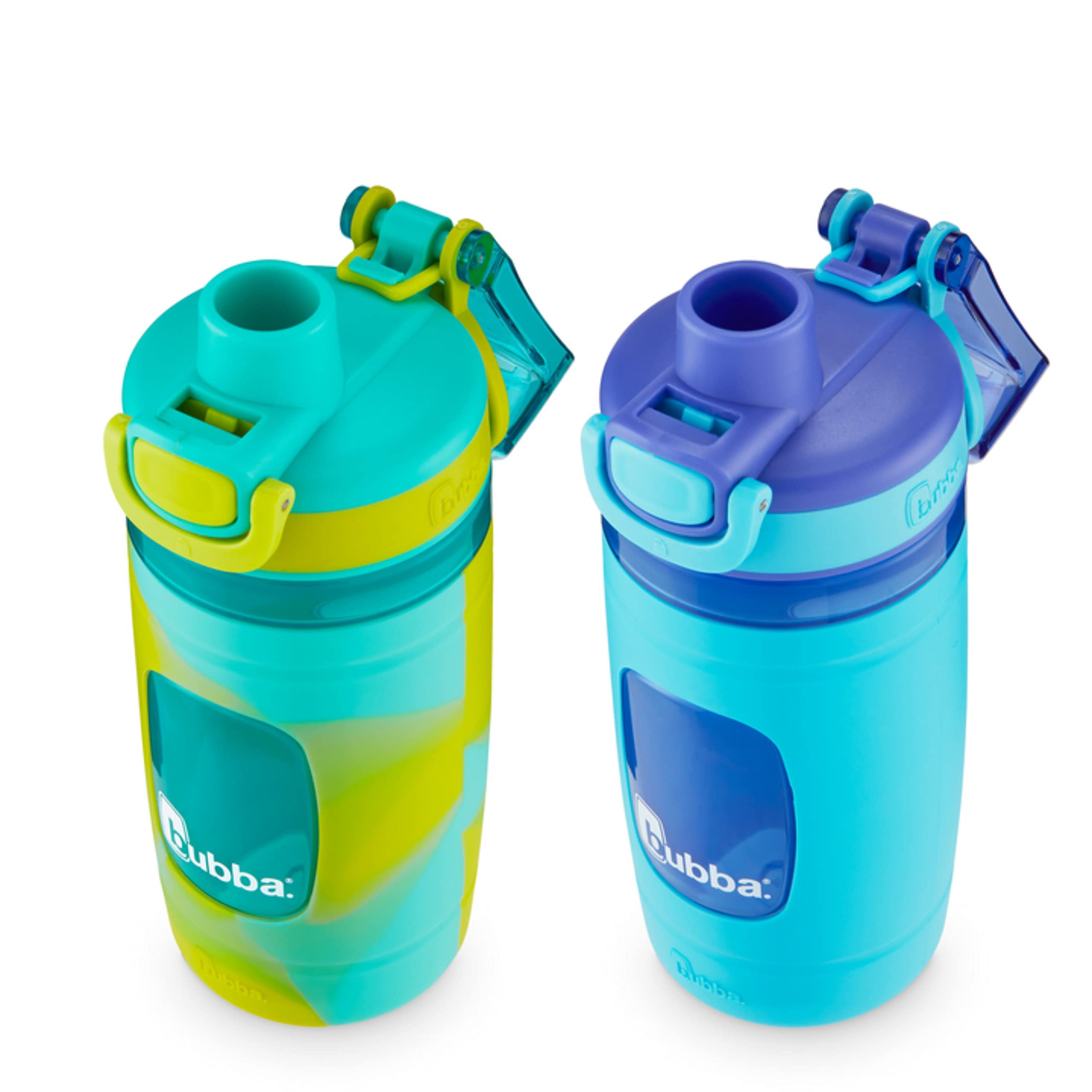 Teach your kids good hydration habits with the bubba Flo Kids Water Bottle with Silicone Sleeve, 16 oz. It features a leak-proof lid and a handy button lock to put a stop to accidental openings, keeping the inside of your car safe from spills. With a high-flow chug lid, kids can quickly hydrate without missing their turn on the monkey bars. A built-in spout cover keeps out dirt. This sturdy water bottle is made of BPA-free plastic. In addition to keeping drinks cold longer, the easy-to-grip silicone sleeve reduces condensation and includes a see-through window so you can track liquid consumption. The sleeve comes off, so throw lid and body onto the top rack of your dishwasher for no-fuss cleaning. Rest assured, your bubba is guaranteed for life. For ages 3 and up.