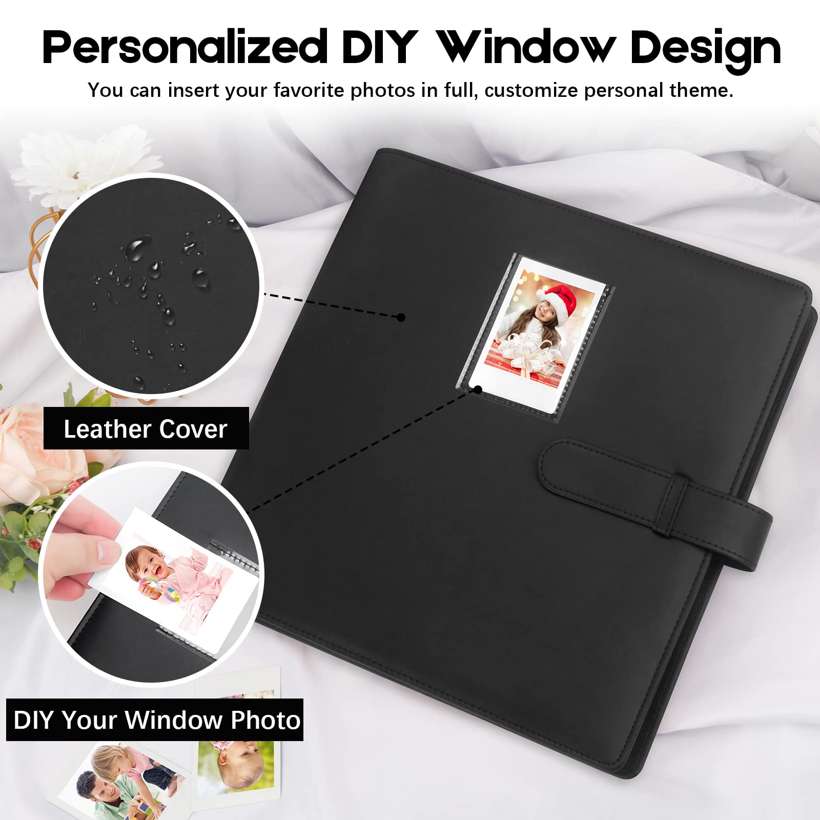 EXQUISITE COVER: Window Design The cover of this photo album has an open pocket , you can place your favorite photos in your own preferences, and make your picture album more personalized through windows.