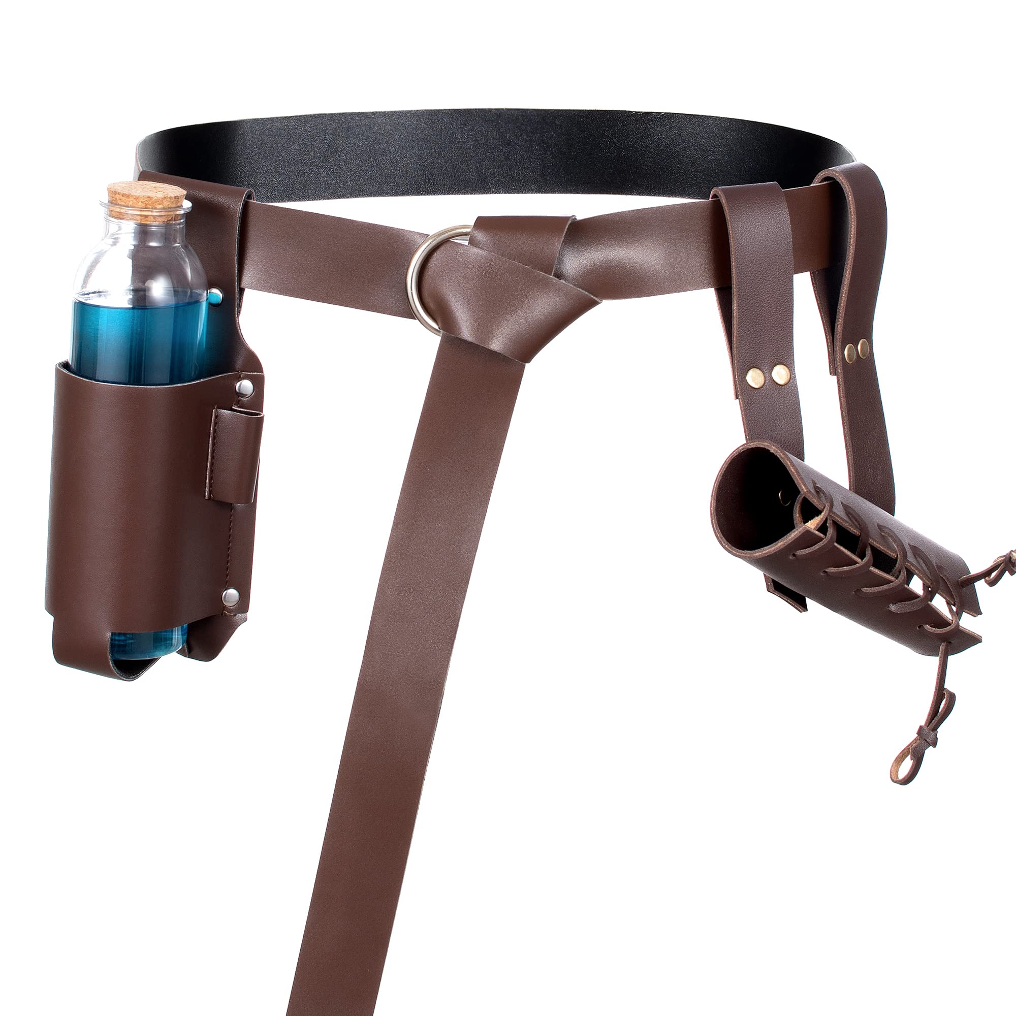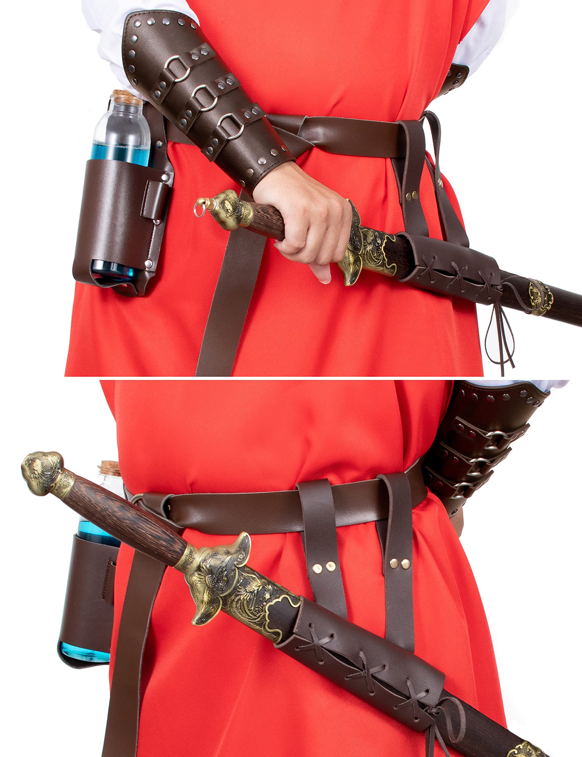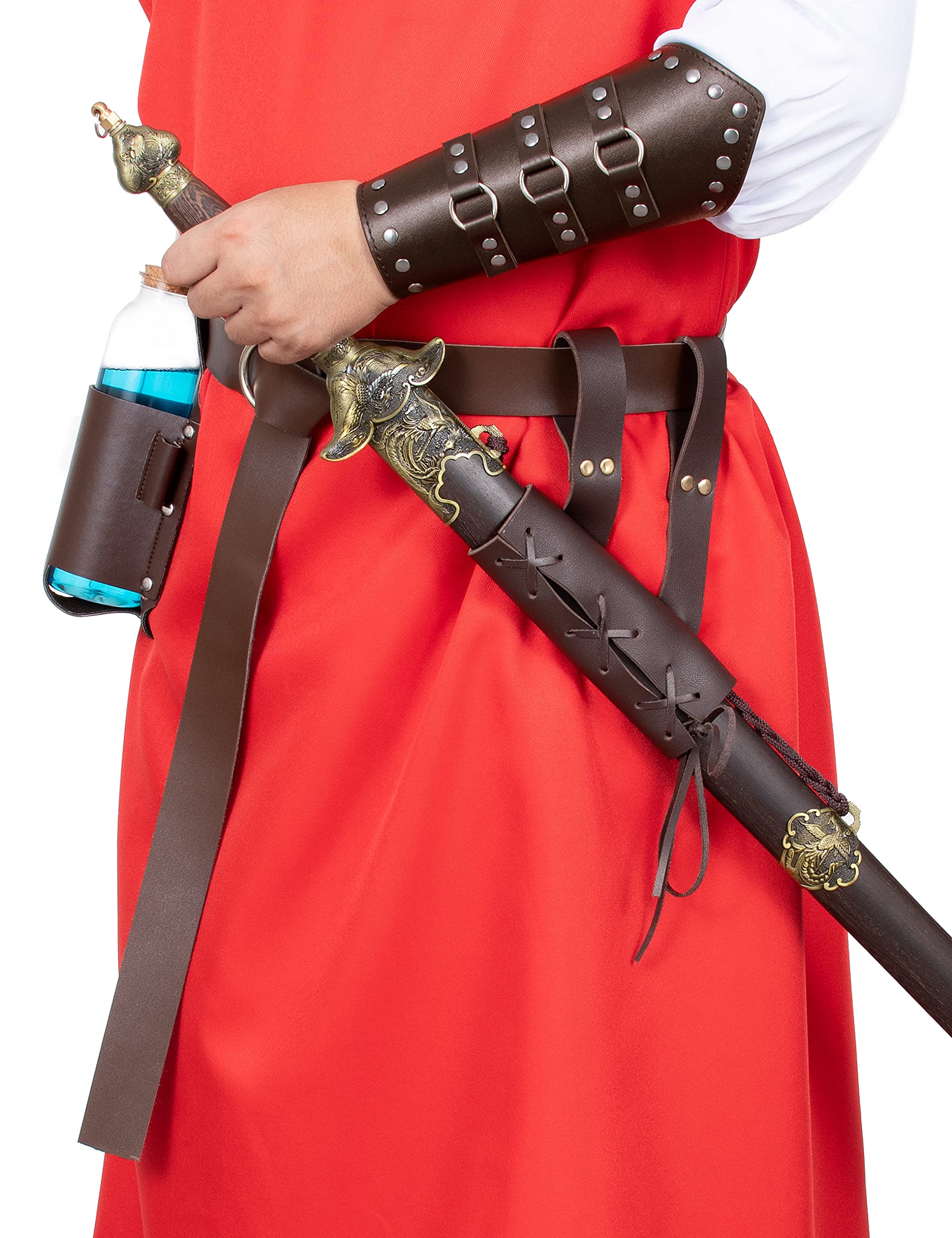 Package includes: Type1~7: PU leather single shoulder belt *1, Shawl scarf *1,PU leather renaissance medieval waist belt *1, PU leather punk gothic bracer*2, Dark magic cork potion bottle and cover *1 ,Medieval renaissance sword frog *1 , 7-piece set. Type8~9: PU leather shoulders belt *1, Shawl scarf *1,PU leather renaissance medieval waist belt *1, PU leather punk gothic bracer*2, Dark magic cork potion bottle and cover *1 ,Medieval renaissance sword frog *1 , 7-piece set. Type10~11: PU leather single shoulder belt *1, Shawl scarf *1,PU leather renaissance medieval waist belt *1, PU leather punk gothic bracer*2, Dark magic cork potion bottle and cover *1 ,Medieval renaissance sword frog *1 , 7-piece set. Unisex medieval knight leather belt shawl men women's steampunk renaissance accessory half shoulder cape scarf buckle bracers sash armlet armband armor shrug retro no belt eyelets renaissance waist belt retro magic cork potion bottle and cover sword frog accessories cosplay party costume Armor is fully wearable and comfortably made.string ties make it fairly adjustable to different arm sizes.
